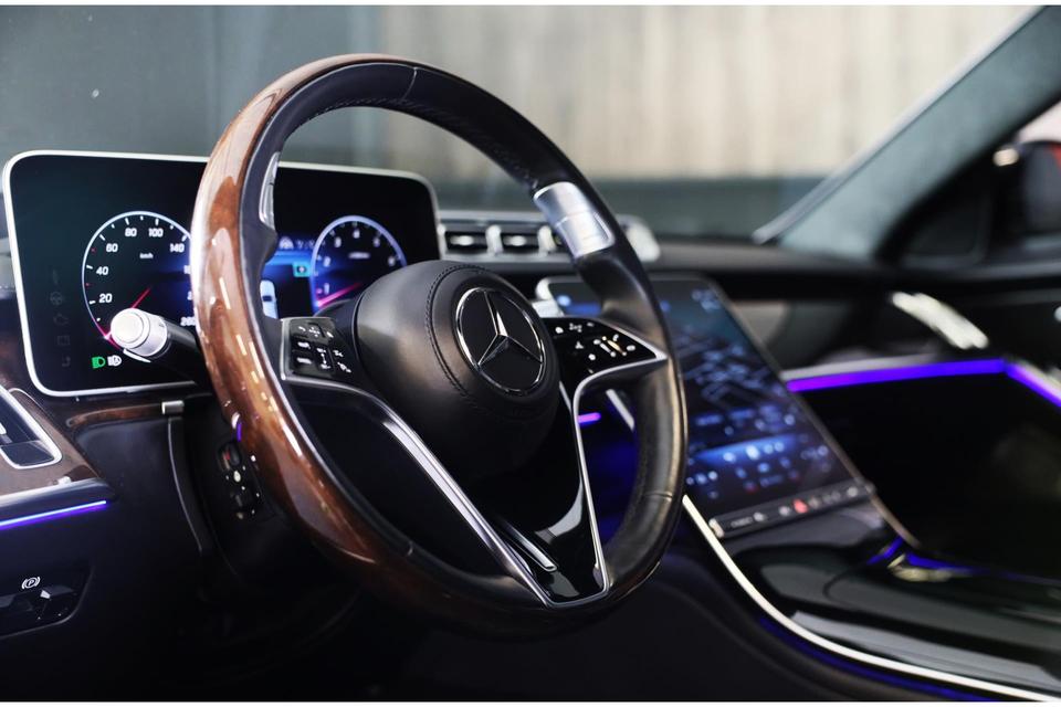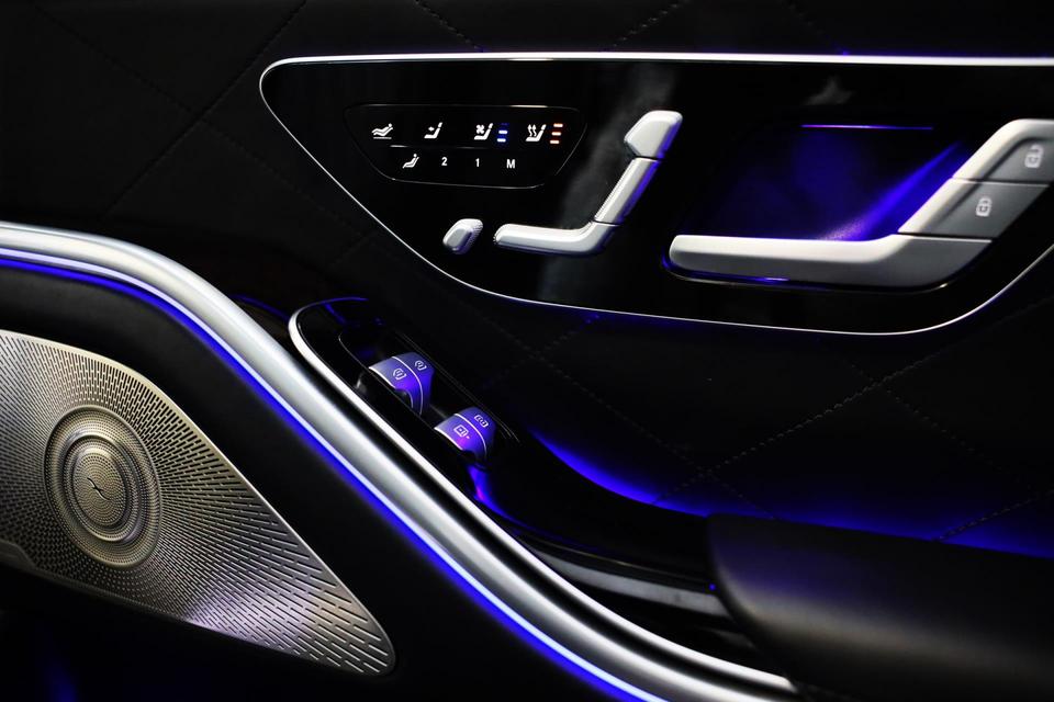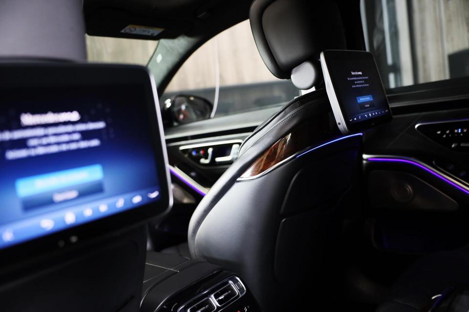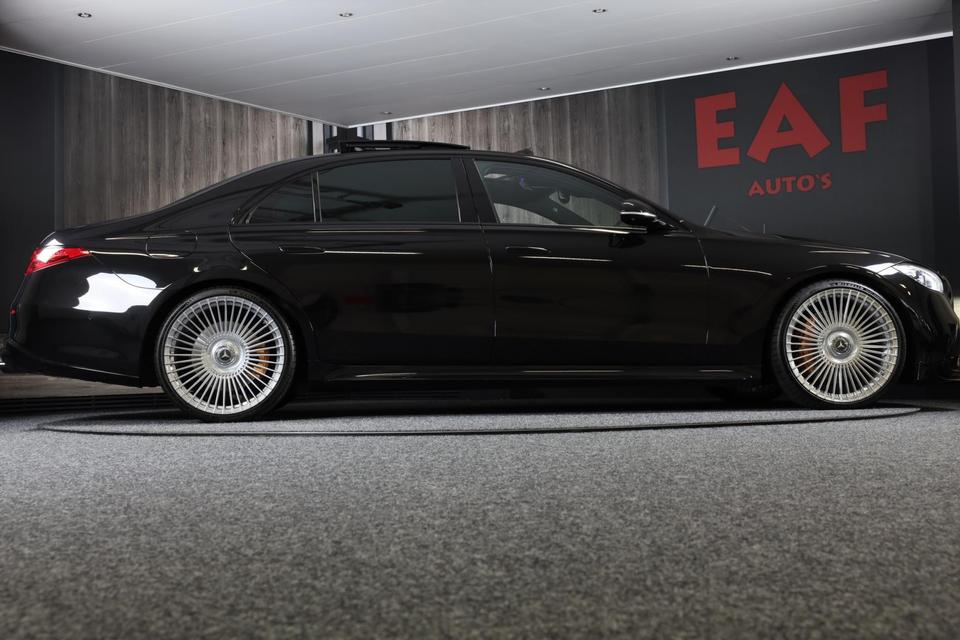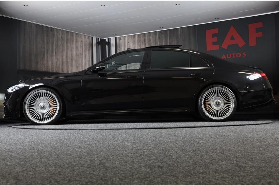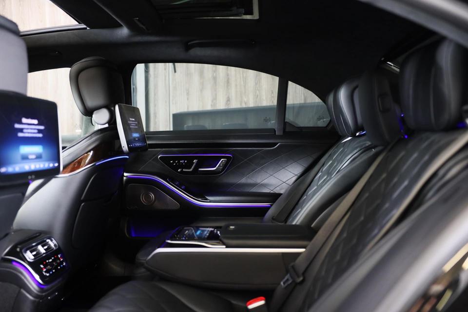 De Mercedes-Benz S-klasse vertegenwoordigt het beste van degelijk Duits design. Als ook de uitstraling een beetje pittig mag, komt de AMG Line Exterieur mooi van pas. Een krachtige motor geeft deze auto zijn sportieve prestaties. Dankzij de luchtvering hebben alle vier de wielen optimaal contact met de weg. En ondertussen elimineert ze het effect van oneffenheden. De vierwielaandrijving is niet alleen heel prettig op onverharde wegen en nat wegdek, maar ook als u de bergen in gaat, bijvoorbeeld op wintersport. Leren bekleding versterkt de topklasse uitstraling van het interieur. Ongeacht hoe koud het buiten is, het verwarmbare stuurwiel samen met de achterbankverwarming zorgt ervoor dat iedereen in de auto zich snel opwarmt. U past de stoelen moeiteloos aan, ze zijn elektrisch in te stellen en hebben bovendien een geheugen. Voel die ruimte eens! Lekker veel licht door het elektrisch bediende glazen panoramadak. Ook open dak, een elektrisch bedienbare achterklep, elektrische zonnerollo voor de achterruit, 22 inch lichtmetalen velgen, LED koplampen en AMG Line Exterieur zijn aan boord.
