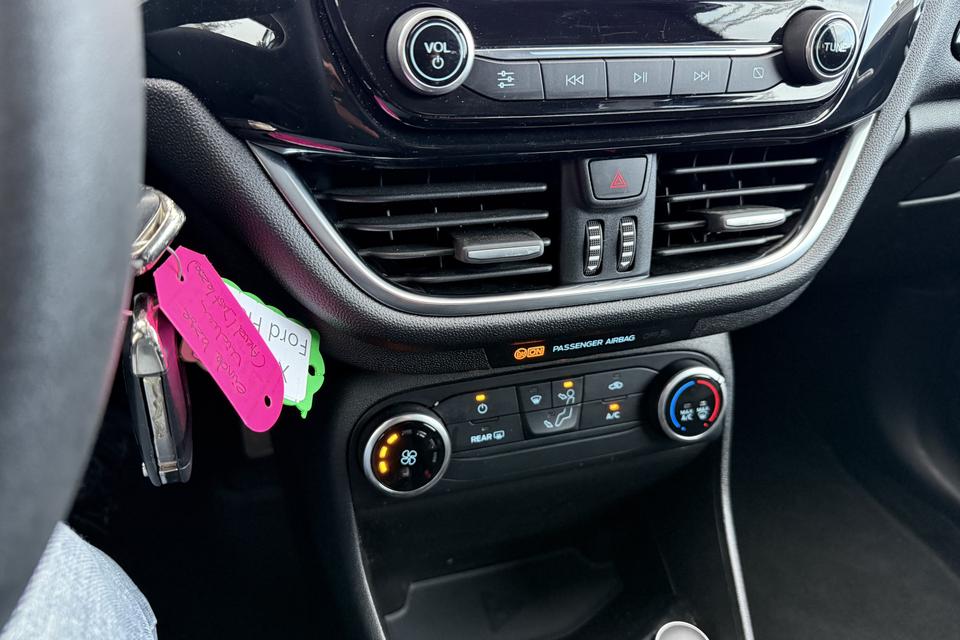 U kunt het audiosysteem met DAB-ontvangst en het navigatiesysteem bedienen met de knoppen op het stuur. Kom-maar-kom-maar...ho! Zo eenvoudig is het voordeel van parkeersensoren. En zo behulpzaam! Natuurlijk is deze Ford Fiesta voorzien van cruise control. Vanzelfsprekend is deze auto ook van airconditioning voorzien. En deze auto heeft ook isofix-aansluiting, usb-aansluiting en aux ingang, centrale deurvergrendeling met afstandsbediening, toerenteller en verstelbaar stuur als standaard uitrusting.