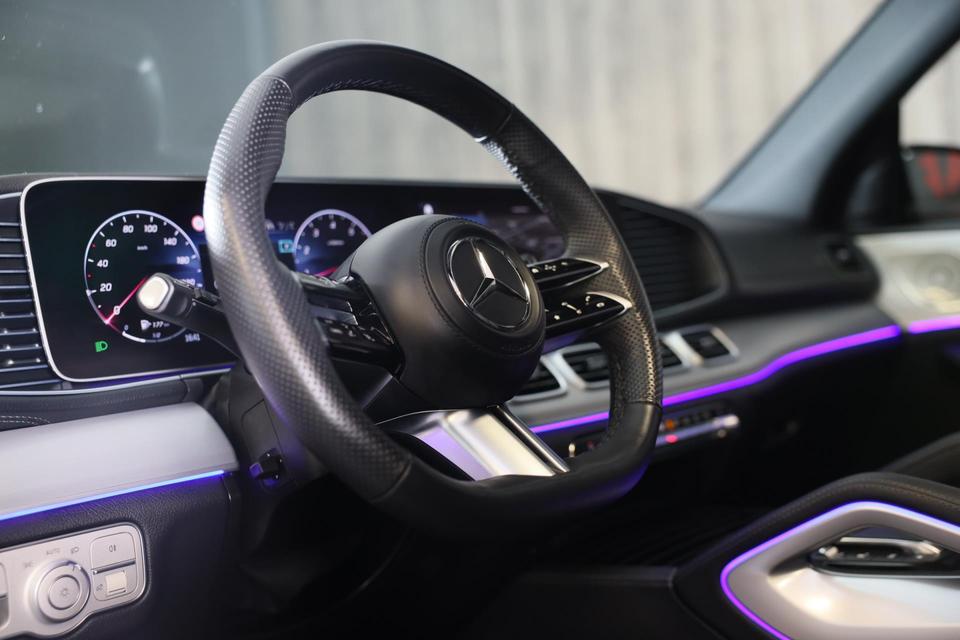 Alle technologie in de Mercedes-Benz GLS is er op gericht om uw rit veilig en gemakkelijk te laten verlopen. En heel aantrekkelijk is de stoere, sportieve AMG Line Exterieur. De uitstekende prestaties van deze auto komen van de zescilinder motor en de automatische transmissie. Ribbels en hobbels in de weg worden royaal gladgestreken door de aanwezige luchtvering. De auto is voorzien van leren bekleding - een fraaie en sfeerverhogende extra. Met het comfort van het verwarmbare stuurwiel, de voorstoelen inclusief massagefunctie en de achterbankverwarming benadrukt deze auto zijn positie als een ware verwenauto. U past de stoelen moeiteloos aan, ze zijn elektrisch in te stellen en hebben bovendien een geheugen. Life is easy! In ieder geval met dit elektrisch bediende glazen panoramadak. De elektrische achterklep opent met een druk op de knop, zodat u gemakkelijk toegang heeft tot de bagageruimte. Bij de zeer complete uitrusting van deze auto behoren ook open dak, 3e zitrij met 2 stoelen, 21 inch lichtmetalen velgen, LED koplampen, AMG Line Exterieur en warmtewerend glas.