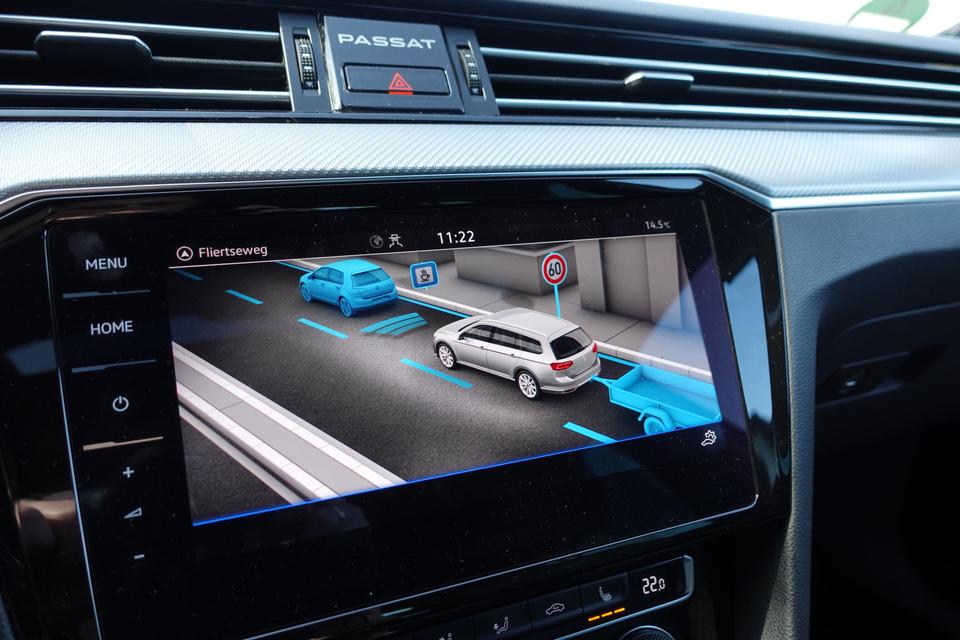 Zoals u mag verwachten van deze Volkswagen Passat Variant is hij uitgerust met een reeks aan actieve veiligheidssystemen. Verkeersbord-detectie herkent verkeersborden en toont deze op het instrumentarium van de auto. Het Lane-keeping systeem garandeert dat u zich niet onverhoeds buiten de lijnen van de rijstrook begeeft. Het forward collision warning-systeem is constant alert en detecteert via sensor de afstand tot voorliggers. Wordt die te klein, dan volgt een automatische waarschuwing. De auto is ook uitgerust met hill hold functie, vermoeidheidsherkenning, autonoom remsysteem en bandenspanningcontrolesysteem.