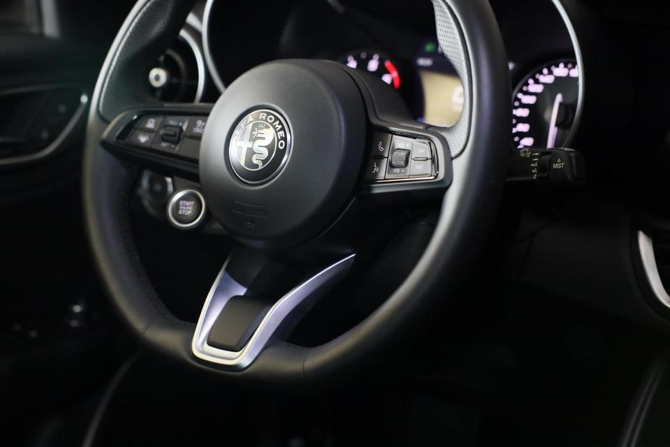 Het is de combinatie van rijplezier en elegantie die Italiaanse auto's zo onweerstaanbaar maakt. De uitstekende prestaties van deze auto komen van de viercilinder motor en de automatische transmissie. Deze Alfa Romeo GIULIA is luxe afgewerkt. Kijk maar naar het lederen interieur! Zit u goed? De stoelen zijn eenvoudig instelbaar dankzij de elektrische bediening met geheugen. Met het elektrisch bedienbare dak verandert u deze cabrio in luttele seconden in een auto voor zonaanbidders. Licht en luchtpartijen: u krijgt ze bijgeleverd dankzij het glazen panoramadak. Zo'n verwarmd stuurwiel is een comfortabele extra, zeker in de winter. Verblinding van tegenliggers is er niet meer bij, dankzij de koplampen met matrix LED-verlichting. En toch de kwaliteit van daglicht in het donker! U wordt in deze auto ook getrakteerd op 19 inch lichtmetalen velgen, zwarte hemelbekleding, getint glas, in delen neerklapbare achterbank, LED-achterlichten en verstelbare lendensteunen.