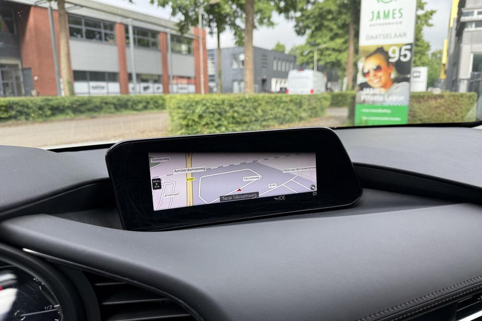 Kommaar-kommaar-kommaar, aldus de achteruitrijcamera. Iedere centimeter vrije ruimte komt haarscherp in beeld. Schadevrij inparkeren maar! Adaptive cruise control is een comfortabele en veilige optie. Het systeem reguleert de snelheid en houdt automatisch afstand tot uw voorligger. Vanaf elke plek contact maken met deze auto: dat kan met behulp van remote services, die u simpel activeert met uw smartphone. Voor een krachtige en natuurlijke geluidsweergave zorgt het high performance audiosysteem. Beste route, verwachte aankomsttijd: uw eigen navigatiesysteem vertelt u alles! Met electronic climate control, DAB ontvangst, regensensor, keyless entry, automatisch dimmende buitenspiegels en lederen stuur is deze Mazda helemaal compleet.