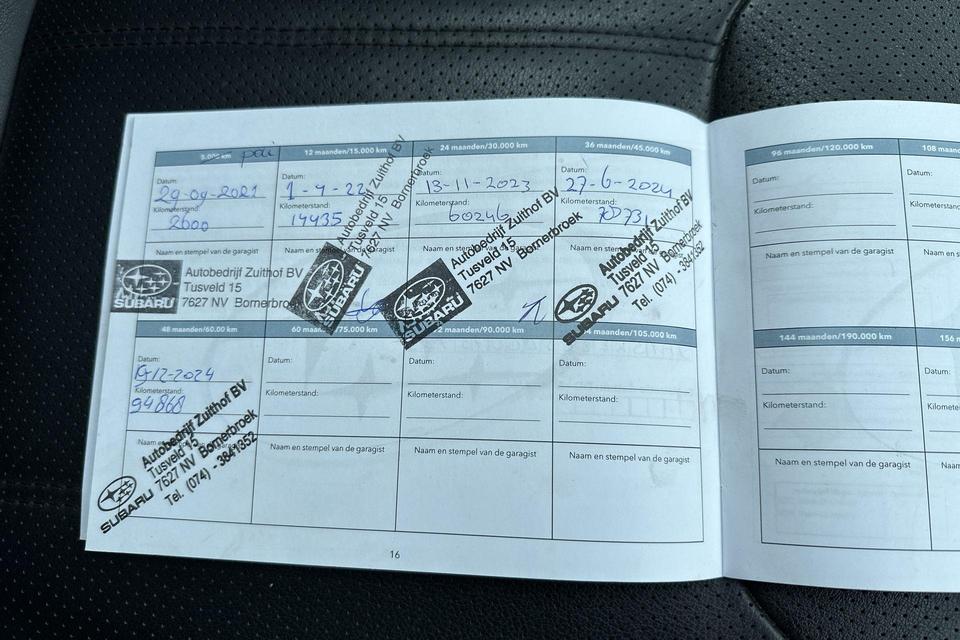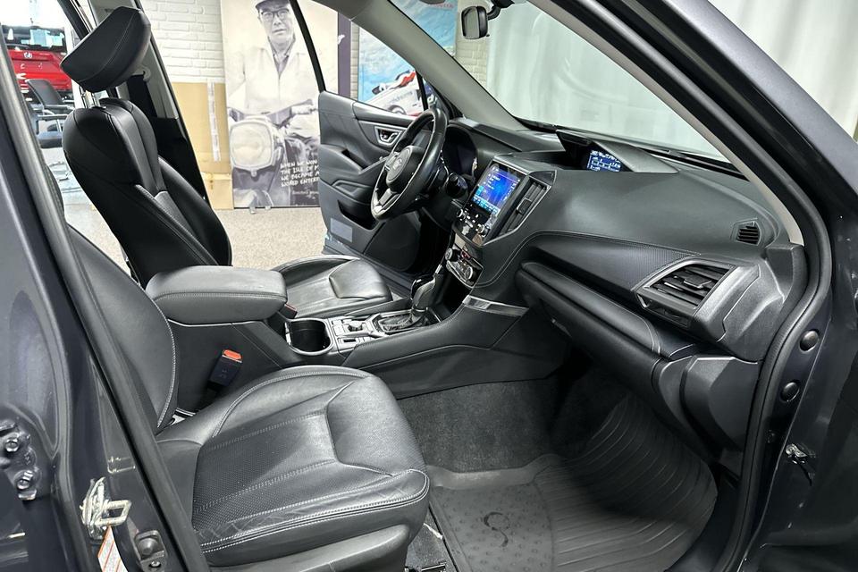 Garantie: Wettelijke garantieGoede prestaties, aantrekkelijke extra's en perfect onderhouden: deze Subaru Forester stelt zich graag aan u voor! De aandrijving komt voor rekening van een benzinemotor en een automatische transmissie. We nemen u in gedachten even mee. Stop uw bagage moeiteloos achterin dankzij de elektrisch bediende achterklep, neem plaats achter het stuur en zie meteen het luxe lederen interieur. Even het elektrisch bediende glazen panorama dak open en rijden maar! Dankzij de stoelverwarming, verwarmbare achterbank en het verwarmbare stuur in deze auto, krijgt het begrip rijcomfort een nieuwe betekenis. Tot de voorzieningen van deze auto behoren 18 inch lichtmetalen velgen, LED koplampen, trailer assistent, dakspoiler, extra getint glas en in delen neerklapbare achterbank.