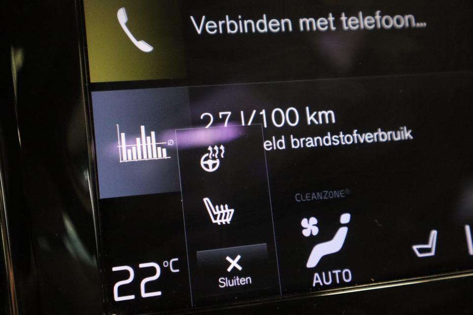 Met de nieuwste technologieën aan boord is deze Volvo in staat om zelf te reageren op potentieel gevaarlijke situaties op de weg. Verkeersborddetectie herkent tijdelijke en permanente verkeersborden langs en boven de weg. Deze Volvo V60 is ook behulpzaam als het gaat om een rechte koers. Het Lane-keeping systeem signaleert en corrigeert als u onbedoeld de rijstrooklijnen dreigt te overschrijden. Hoe goed u ook oplet in het verkeer, de dode hoek blijft een risico. Gelukkig is deze Volvo V60 voorzien van actieve dodehoekdetectie. Ook helpen het forward collision warning system, hill hold functie, brake assist, vermoeidheidsherkenning en bandenspanningcontrolesysteem, uw rit tot een veilige rit te maken.
