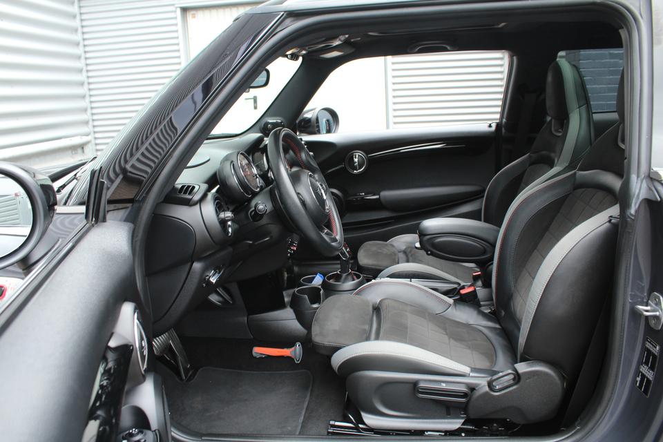 Dit is niet zomaar een MINI John Cooper Works. De hoge prestaties van de motor, het strak afgestelde onderstel en de uitgekiende verhoudingen van de transmissie staan garant voor bergen rijplezier. De uitstekende prestaties van deze auto komen van de viercilinder benzinemotor en de automatische transmissie. Tijdens gure dagen is het prettig zitten in de verwarmbare voorstoelen. Scherpe bochten, pittige acceleraties? In de sportstoelen blijft u altijd in positie. Dat noemen ze nou een ruimtelijk effect: het elektrisch bediende glazen panoramadak. Ook is de auto voorzien van: 18 inch lichtmetalen velgen, LED koplampen, sportonderstel, halflederen bekleding, adaptief dempingsysteem en dakspoiler.