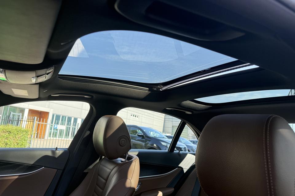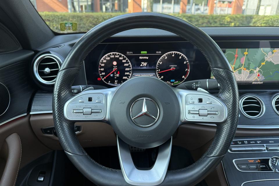 Alle technologie in de Mercedes-Benz E-klasse is er op gericht om uw rit veilig en gemakkelijk te laten verlopen. De AMG-styling geeft een niet te missen uitstraling. De aandrijving van deze Mercedes-Benz wordt verzorgd door een viercilinder benzinemotor en een automatische transmissie. Eén blik naar binnen bewijst het al: pure klasse, onder meer dankzij het lederen interieur. 's Winters komen de verwarmbare voorstoelen heerlijk van pas. De comfortstoelen van deze Mercedes-Benz E-klasse staan bekend om hun goede zithouding. Licht, luxe en gemak komen samen in de vorm van het elektrische bediende glazen panoramadak. In deze Mercedes-Benz profiteert u onder andere ook van: 19 inch lichtmetalen velgen, LED koplampen, AMG-styling, warmtewerend glas, in delen neerklapbare achterbank en LED-achterlichten.