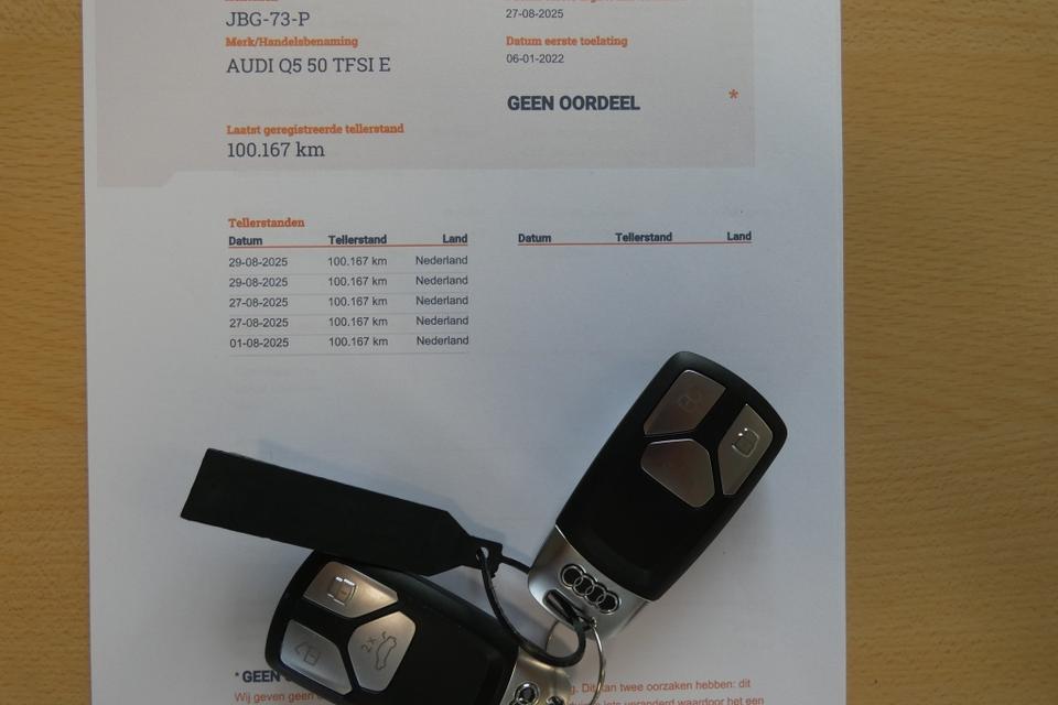 Niet van nieuw te onderscheiden Audi Q5! Uitgevoerd in een fraaie en zeer complete Advanced Business Line Plus uitvoering met alle opties, gangbaar anno 2026, aan boord. Met deze auto heeft u een onbeperkte actieradius, volledig elektrisch is de actieradius circa 55 km (afhankelijk van temperatuur en gebruik). Auto verkeert zowel technisch als optisch in keurige conditie. Auto is afkomstig van de 1e eigenaar, is schade vrij en compleet met reservesleutel, handleidingen, service documentatie en tellerstandrapport. Tevens voorzien van extra set 19 inch lichtmetalen velgen met winderbanden en een laadkabel voor het thuis laden (gewoon in een stopcontact), u hoeft dus geen dure oplaadmogelijkheid thuis te laten installeren. Wij rekenen € 795,- voor een afleverpakket en leveren deze auto met nieuwe APK, onderhoudsbeurt, aircoservice en 12 maanden Bovag garantie. Vindt u deze auto op viabovag.nl dan is de getoonde prijs inclusief het afleverpakket.
