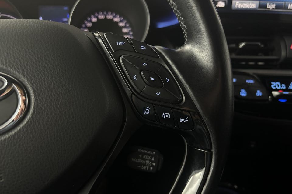 Zoals u mag verwachten van deze Toyota C-HR is hij uitgerust met een reeks aan actieve veiligheidssystemen. U rijdt ook veiliger omdat deze auto voor u de verkeersborden langs de weg kan lezen. De belangrijkste borden worden op uw instrumentarium geprojecteerd, zodat u ze niet kunt missen. Het Lane-keeping systeem zorgt voor een automatisch constante positie binnen de rijstrook. Afdwalen is uitgesloten. Bij een noodstop gebeurt er heel veel tegelijk: gas los, rempedaal in, kijken, sturen. Dan is het een veilig gevoel dat de Brake Assist uw remactie tot het maximum oppept. De veiligheid van deze auto wordt verder verhoogd door hill hold functie en bandenspanningcontrolesysteem.