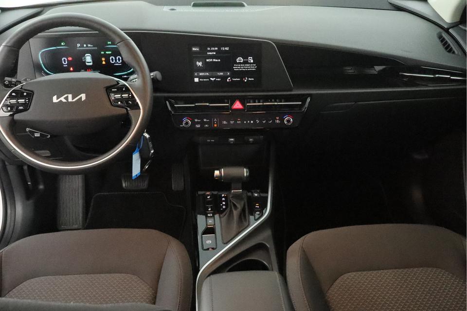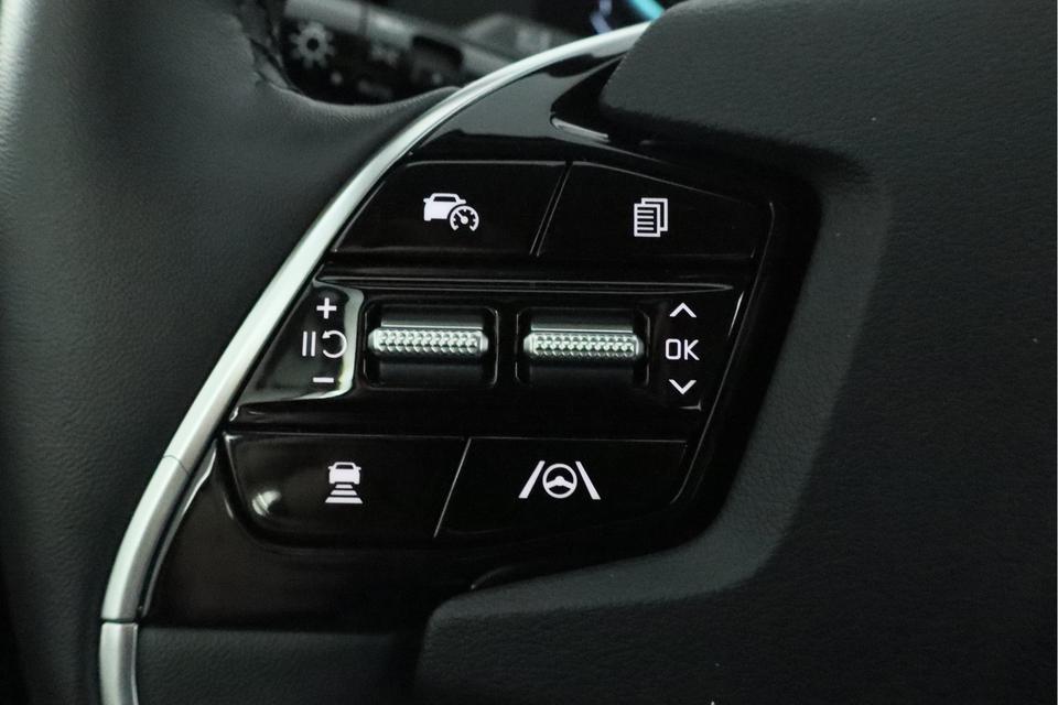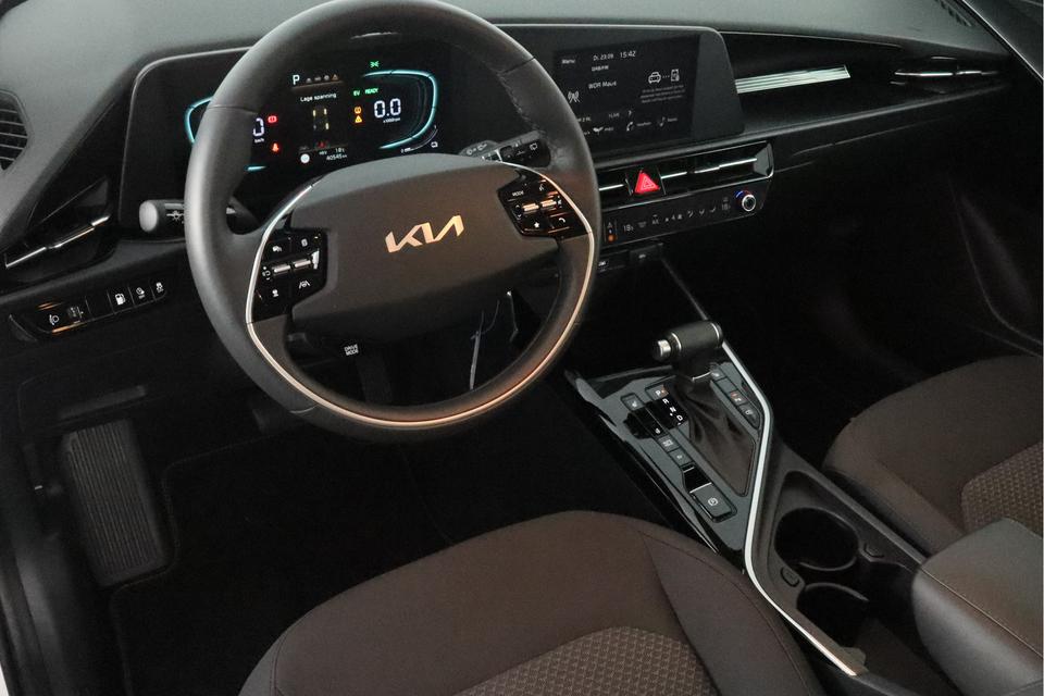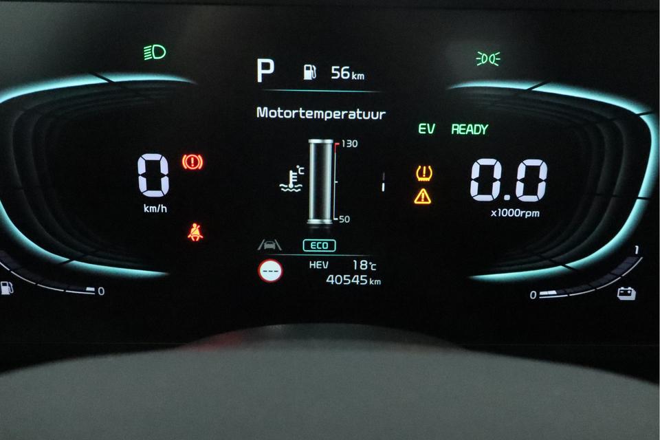 Een gevisualiseerd overzicht van alle belangrijke functies wordt geleverd door het digitale dashboard. Achteruitrijden en inparkeren worden een eitje dankzij de achteruitrijcamera. Adaptive cruise control houdt de ingestelde snelheid vast en houdt automatisch afstand tot uw voorligger. Rijden-stilstaan, rijden-stilstaan. Niks is irritanter en vermoeiender dan filerijden. Daar heeft deze Kia Niro een oplossing voor: de file assistent, die met radarmeting permanent het tempo aanpast op de voorligger. Zelfs als die stopt. Een smartphone met internetverbinding legt eenvoudig overal contact met de auto. U kunt functies activeren en de conditie van de auto monitoren. De uitrusting van deze Kia is met dashboard met spraakbediening, kruisend verkeer detectie, automatische airconditioning, DAB ontvangst, regensensor en automatisch dimmende binnenspiegel behoorlijk compleet.