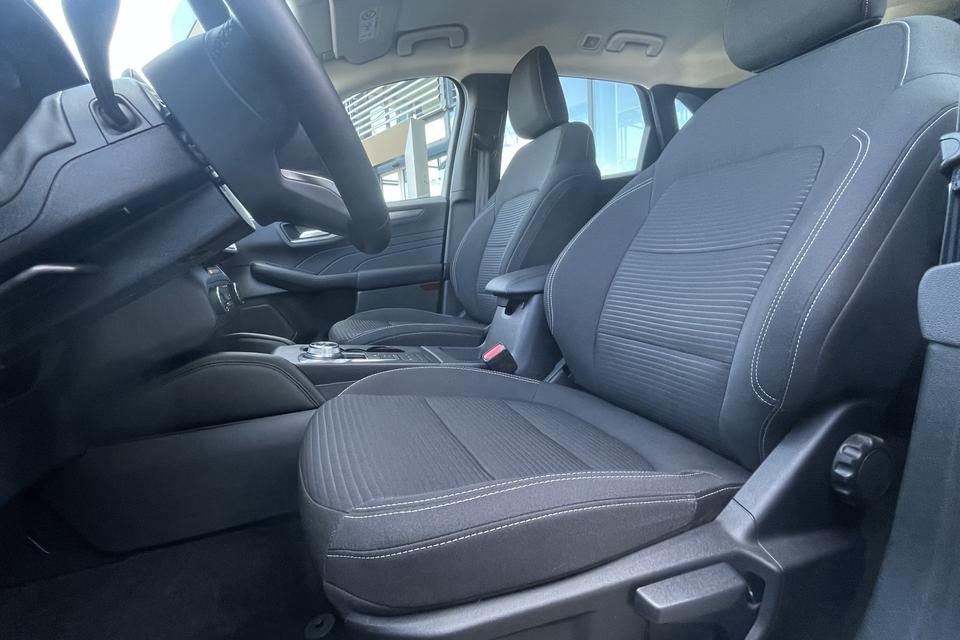 Tijdens de rit wordt u als bestuurder ondersteund door verschillende systemen die de weg en uw omgeving in de gaten houden. Deze Ford Kuga is ook behulpzaam als het gaat om een rechte koers. Het Lane-keeping systeem signaleert en corrigeert als u onbedoeld de rijstrooklijnen dreigt te overschrijden. Op een kop-staartbotsing zit niemand te wachten. Daarom is de forward collision warning onderweg constant alert en berekent via een sensor de veilige afstand tot voorliggers. In deze Ford vinden we verder een hill hold functie, autonoom remsysteem en bandenspanningcontrolesysteem.