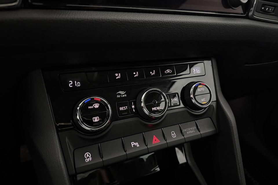 De nieuwste veiligheidssystemen komen in deze ŠKODA Kodiaq samen. In een noodsituatie waarschuwt forward collision warning bij een dreigende aanrijding met een voorligger. Bij concentratieverlies van de bestuurder geeft vermoeidheidsherkenning automatisch een waarschuwingssignaal. Dankzij veiligheidsvoorzieningen als autonoom remsysteem en bandenspanningcontrolesysteem, ben je steeds veilig onderweg.