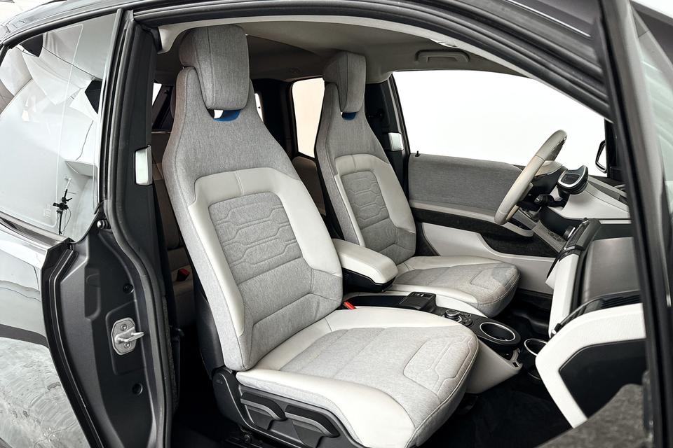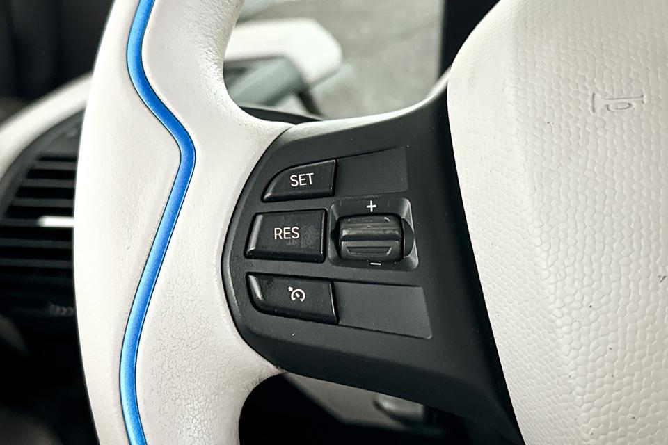 Natuurlijk is er ook automatische airconditioning aanwezig. Een plekje vinden in de binnenstad is één, inparkeren is twee. Voor dat laatste heeft deze BMW i3 prima parkeersensoren die u een handje helpen. Achter het stuur van deze BMW bent u niet alleen. De auto kijkt als het ware met u mee tijdens de rit. De regensensor schakelt de ruitenwissers in als het nodig is en de automatisch inschakelbare verlichting doet de lichten voor u aan. Maximumsnelheid? Even de cruise control instellen en u blijft perfect binnen de marges. Met navigatiesysteem met harde schijf, buitentemperatuurmeter, automatisch dimmende buitenspiegels, lederen stuur, centrale deurvergrendeling met afstandsbediening en boordcomputer is deze BMW helemaal compleet.