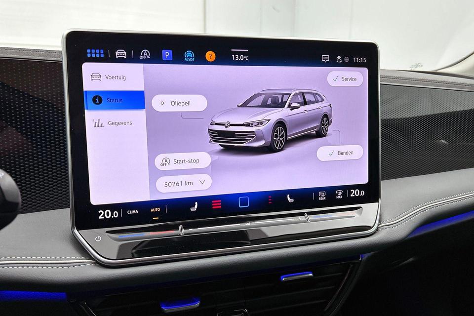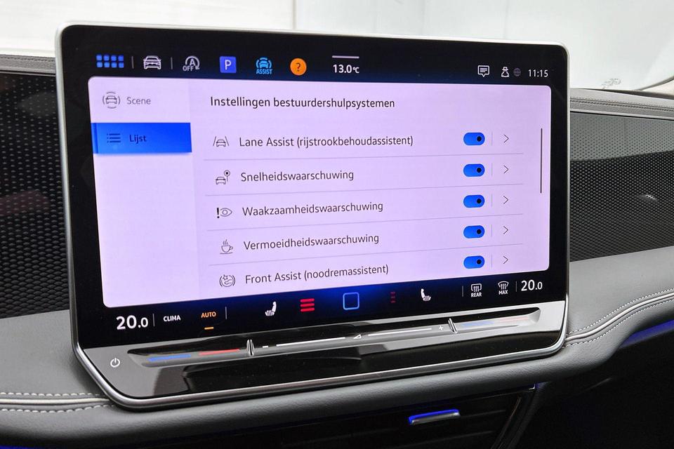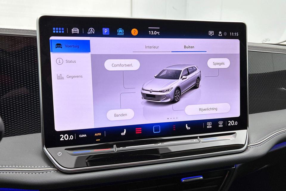 Uw rit wordt comfortabel en veilig gemaakt door het digitale dashboard dat alles projecteert wat u wenst in de digitale wereld van mobiliteit. Twijfelen hoeveel ruimte u achter de auto heeft? Met de achteruitrijcamera weet u altijd hoeveel centimeter! Als u de adaptive cruise control inschakelt, regelt de auto zelf de snelheid en de afstand tot de auto voor u. Spraaksturing is onderdeel van de uitrusting van deze auto. Met uw stem kunt u de belangrijkste voertuigfuncties bedienen. Communiceren met uw auto? Dat gaat via remote services. Met uw smartphone maakt u waar dan ook contact om allerlei functies te checken of te activeren. Ook is de Volkswagen uitgerust met: navigatiesysteem, kruisend verkeer detectie, electronic climate control, draadloos opladen, DAB ontvangst en regensensor.