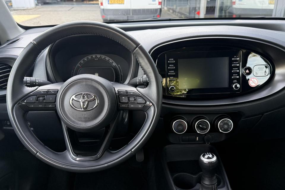 Niets achter deze auto blijft verborgen door de achteruitrijcamera. Een veilig gevoel! Met adaptive cruise control houdt deze auto automatisch afstand tot uw voorligger. Het eersteklas audiosysteem is voorzien van DAB-radio. Hoge kwaliteit en veel zenderkeus. Aan boord van deze Toyota Aygo X is een achteropkomend verkeer waarschuwing voor extra veiligheid. Het hele jaar door zorgt airconditioning voor een prettige temperatuur. En dan is deze auto ook nog eens voorzien van lederen stuur en centrale deurvergrendeling met afstandsbediening.
