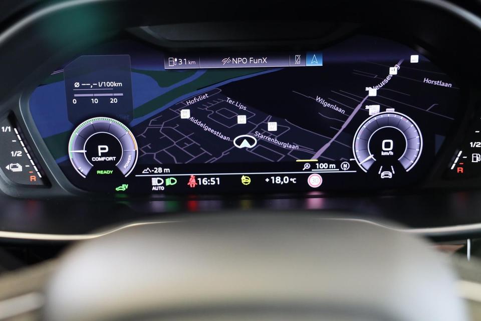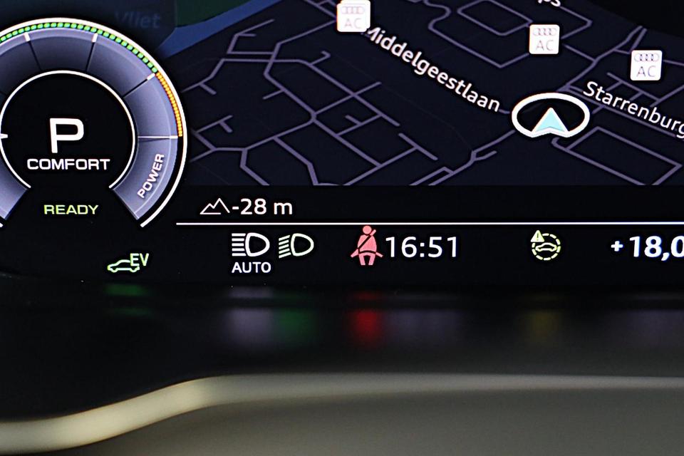 U zult verrukt zijn van de digitale wereld van mobiliteit; het digitale dashboard projecteert alles wat u nodig heeft om uw rit aangenaam en veilig te maken. De 360 graden camera op deze auto wordt verzorgd door vier geavanceerde camera's. Het biedt garantie van uitstekende beeldkwaliteit. Adaptive cruise control is veilig en comfortabel. De snelheidsregelaar houdt automatisch afstand tot het voertuig dat voor u rijdt. In één oogopslag weet u de complete systeemstatus van deze auto. Dankzij Connected Services. Rijplezier en luisterplezier gaan hand in hand dankzij het high performance audiosysteem. U bent in deze Audi ook voorzien van navigatiesysteem met harde schijf, automatische airconditioning, F1-schakelflippers op het stuurwiel, draadloos opladen, DAB ontvangst en regensensor.