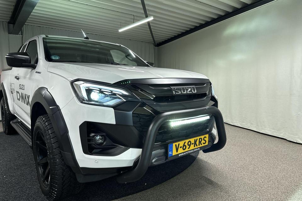 Deze Isuzu D-Max Extended Cab V-Cross met stoere 18 inch wielen met AT banden, bullbar met verstraler, verstraler op rollbar, nu als demo deal voor € 45.645,- excl. BTW.