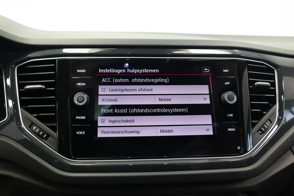 In de Volkswagen T-Roc heeft uw veiligheid en die van uw omgeving prioriteit. Het Lane-keeping systeem doet precies wat nodig is: waarschuwen en corrigeren bij onbedoelde overschrijding van de rijstrooklijnen. Deze Volkswagen T-Roc blijft altijd alert. Zo wordt gebruik gemaakt van forward collision warning. Bij het mogelijke risico op een aanrijding met een voertuig voor u, slaat het systeem alarm. Met de vermoeidheidsassistent bent u ook op lange ritten veilig op pad. Het systeem geeft een waarschuwing zodra het tijd is voor een pauze. In deze Volkswagen vinden we verder een dodehoekdetectie, hill hold functie, autonoom remsysteem en bandenspanningcontrolesysteem.