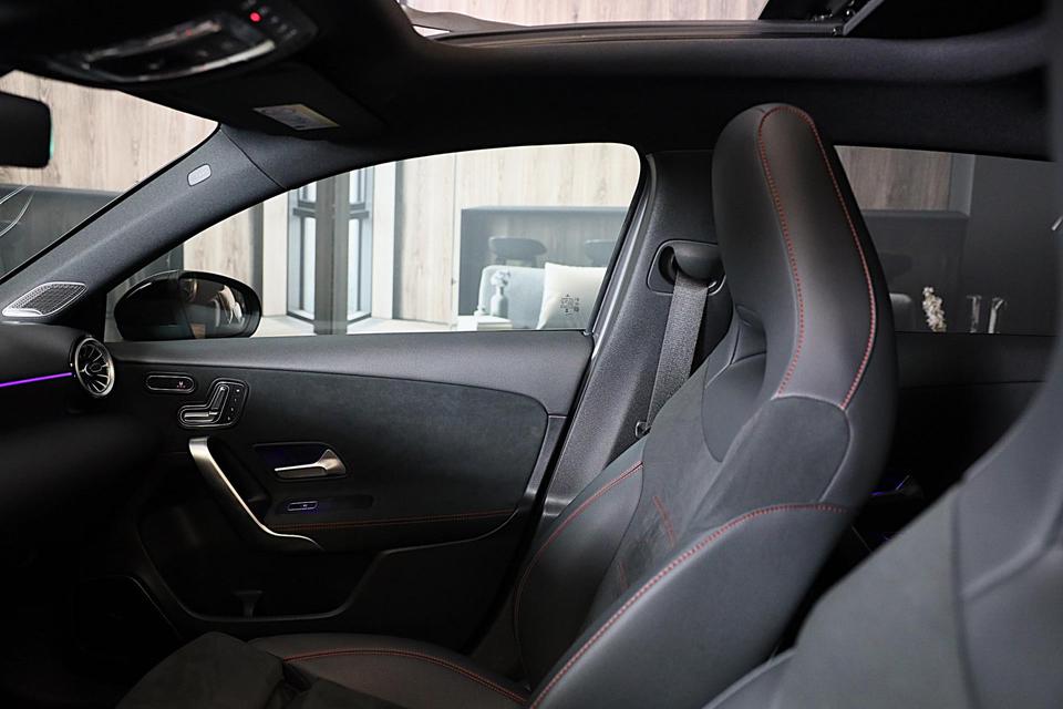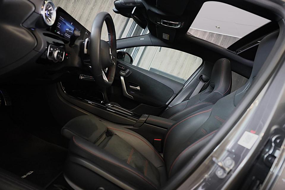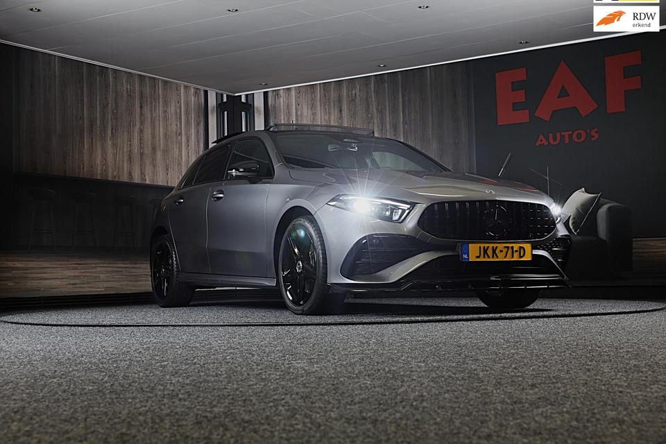 Als u gaat voor kwaliteit zonder compromis, dan is deze Mercedes-Benz A-klasse een auto voor u. De begrippen exclusief en sportief zijn allebei van toepassing op de markante AMG Line Exterieur. Een viercilinder motor en een automatische transmissie zorgen voor de uitstekende prestaties van deze auto. De lederen bekleding benadrukt de luxe uitstraling van deze auto. U past de stoelen moeiteloos aan, ze zijn elektrisch in te stellen en hebben bovendien een geheugen. Met het elektrisch bedienbare cabriodak geniet u in een oogwenk van de buitenlucht. Maximaal daglicht, royaal uitzicht: het glazen panoramadak zorgt ervoor! Bij deze Mercedes-Benz A-klasse is aan alles gedacht, tot en met een verwarmd stuurwiel aan toe. De koplampen zijn voorzien van matrix LED-verlichting waarmee u aanzienlijk verder kan kijken in het donker. Het systeem past zelf de lichtstraal aan op het moment tegenliggers verblind kunnen worden. Ook 18 inch lichtmetalen velgen, AMG Line Exterieur, warmtewerend glas, zwarte hemelbekleding, in delen neerklapbare achterbank en LED-achterlichten zijn aan boord.