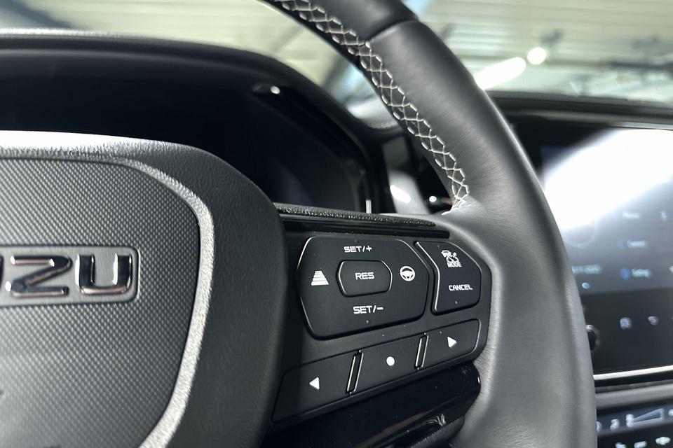 Soepel inparkeren gaat gemakkelijker dan u verwacht dankzij de achteruitrijcamera. Adaptive cruise control is een comfortabele en veilige optie. Het systeem reguleert de snelheid en houdt automatisch afstand tot uw voorligger. De auto is voorzien van een trekhaak en is een uitstekende caravantrekker. De ingebouwde Connected Services vertellen u via de app alles over de status van de auto. Locatie, onderhoudsstatus, brandstofpeil en nog veel meer! Als belangrijke extra geldt zonder twijfel het high performance audiosysteem met topkwaliteit geluidsweergave. De uitrusting van deze Isuzu is met achteropkomend verkeer waarschuwing, automatische airconditioning, DAB ontvangst, regensensor, keyless entry en automatisch dimmende binnenspiegel behoorlijk compleet.