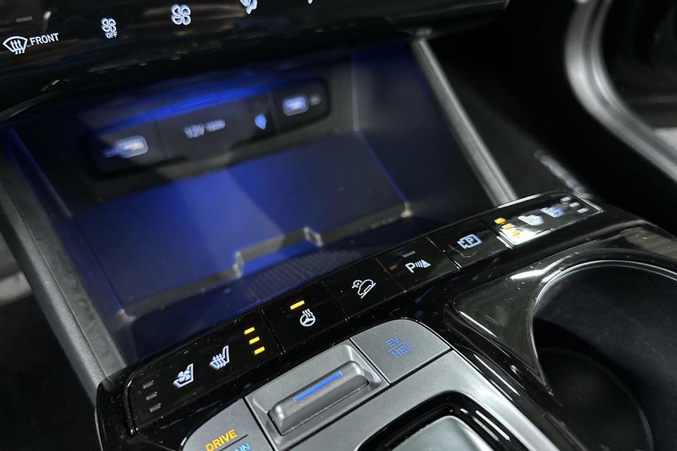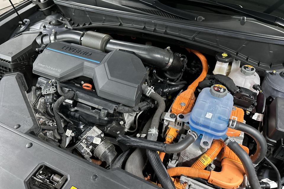 New Thinking. New Possibilities volgens de Zuid-Koreaanse aanpak. Da's Hyundai. Deze hybride auto beschikt over een verbrandingsmotor én een elektromotor. Daardoor rijdt de auto zeer comfortabel en is tegelijk zuinig in het verbruik. U zult absoluut de luxe waarderen van de stoelverwarming, verwarmbare achterbank, en het verwarmbare stuur dat inbegrepen is in dit voertuig. De elektrische achterklep opent met een druk op de knop, zodat u gemakkelijk toegang heeft tot de bagageruimte. Bij de zeer complete uitrusting van deze auto behoren ook 19 inch lichtmetalen velgen, LED koplampen, extra getint glas, in delen neerklapbare achterbank, LED-achterlichten en verstelbare lendensteunen.