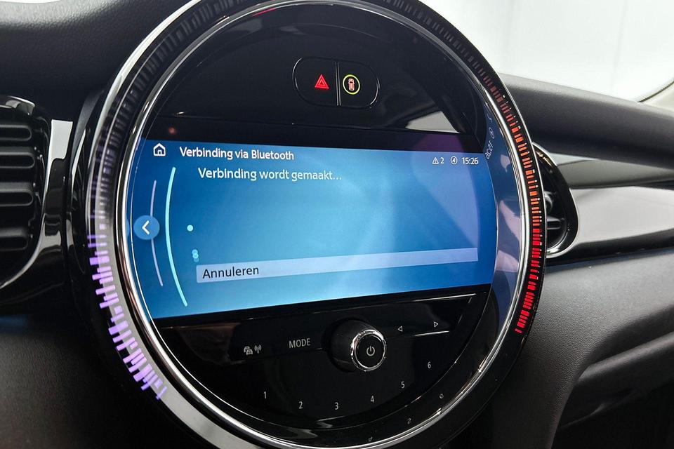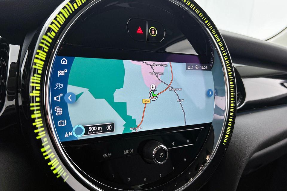 De speciale app verbindt met Connected Services, die de status van vitale functies bijhoudt en waarschuwt als u bijvoorbeeld moet tanken, de bandenspanning moet controleren of olie moet bijvullen. Soms heeft u meer parkeerruimte dan u denkt. Maar soms ook niet. De parkeersensoren vertellen precies hoeveel. Het drukke verkeer eist onderweg al uw aandacht op. Daarom is het goed dat deze Mini is voorzien van diverse systemen die u assisteren tijdens de rit. Een automatisch inschakelbare verlichting neemt het waar als het donker wordt of gaat schemeren, en schakelt dan automatisch de verlichting in. Op dezelfde manier "ziet" de regensensor de eerste spatjes regen en schakelt dan de ruitenwissers in, en als het harder gaat regenen zet hij de ruitenwissers ook in een snellere stand. Met cruise control rijdt u rustiger en meer ontspannen, en bovendien zuiniger. Sleutelloos instappen en starten: de keyless start zorgt ervoor! En dan is deze auto ook nog eens voorzien van full map navigatiesysteem, DAB ontvangst, sportstuurwiel, airconditioning, buitentemperatuurmeter en isofix-aansluiting.