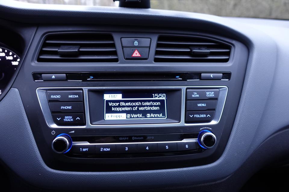 De nieuwste veiligheidssystemen komen in deze Hyundai i20 samen. Het Lane-keeping systeem garandeert dat u zich niet onverhoeds buiten de lijnen van de rijstrook begeeft. De hill hold control schakelt zichzelf automatisch in en uit op een helling. Zo rijdt u zelfs op de steilste wegen soepel weg.