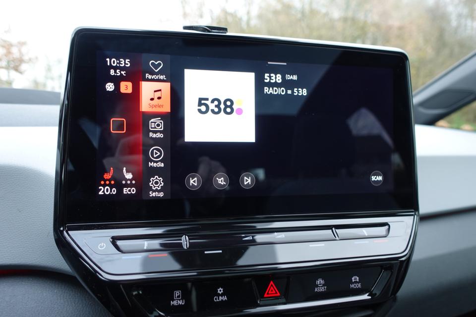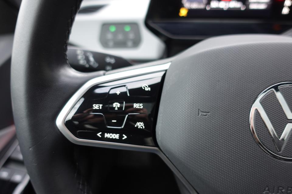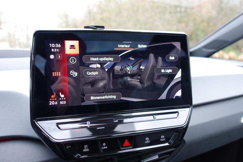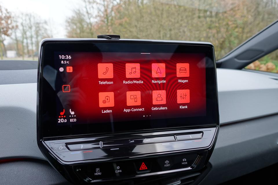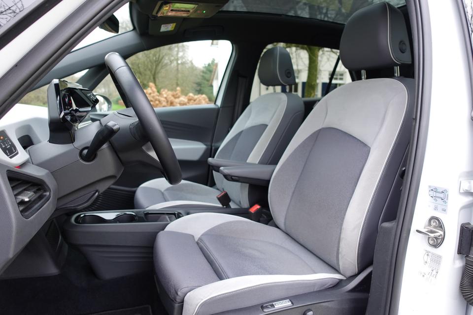 Zoals u mag verwachten van deze Volkswagen ID.3 is hij uitgerust met een reeks aan actieve veiligheidssystemen. Tijdens de rit hebt u altijd een bijrijder, want de verkeersbord-detectie leest de borden langs de weg en projecteert ze voor u op het instrumentarium. Voorzien van het Lane-keeping systeem. Ofwel: blijf automatisch in je baan. Veel aanrijdingen bestaan uit kop-staartbotsingen. De forward collision warning reduceert dat risico aanzienlijk. In deze Volkswagen vinden we verder een head-up display, dodehoekdetectie, hill hold functie, vermoeidheidsherkenning, autonoom remsysteem en bandenspanningcontrolesysteem.