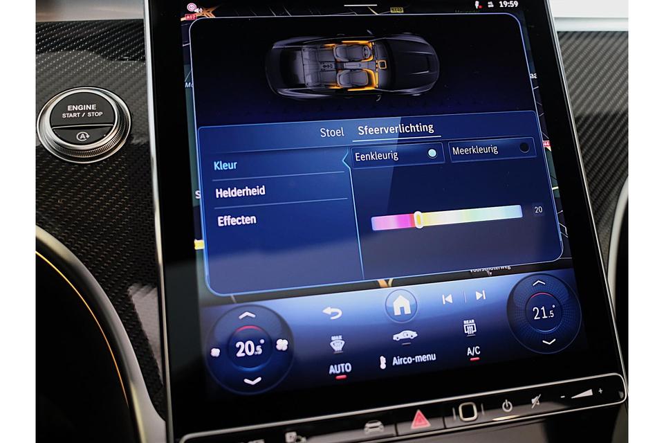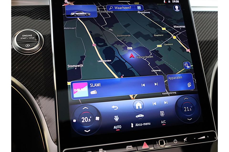 Ervaar de wonderen van de digitale mobiliteitswereld waarbij alles wat u wenst op het digitale dashboard verschijnt. Elk van de vier camera's op deze auto draagt bij aan het creëren van een onbelemmerd uitzicht van 360 graden rondom de auto. Adaptive cruise control is veilig en comfortabel. De snelheidsregelaar houdt automatisch afstand tot het voertuig dat voor u rijdt. Mocht zich een probleem voordoen, dan krijgt u via remote services op uw smartphone te zien wat er precies aan de hand is, waar u ook bent. Muziek luisteren wordt genieten met het high performance audiosysteem. Deze Mercedes-Benz is voorzien van navigatiesysteem met harde schijf, automatische airconditioning, draadloos opladen, DAB ontvangst, regensensor en keyless entry.