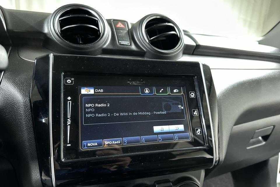 De achteruitrijcamera vergemakkelijkt achteruit inparkeren. U ziet duidelijk wat er achter de auto gebeurt. Adaptive cruise control houdt de ingestelde snelheid vast en houdt automatisch afstand tot uw voorligger. Onderweg kunt u veilig genieten van het audiosysteem met DAB-radio en het full map navigatiesysteem. Want in deze Suzuki bedient u ze vanaf het stuurwiel. Deze Suzuki Swift is voorzien van sensoren aan de achterzijde om een achteropkomend verkeer waarschuwing te geven als de afstand tussen u en een achterligger te klein is. De automatische airconditioning zorgt onder alle omstandigheden voor een prettige temperatuur. U bent in deze Suzuki ook voorzien van keyless entry, lederen stuur, bagage afdekhoes en boordcomputer.