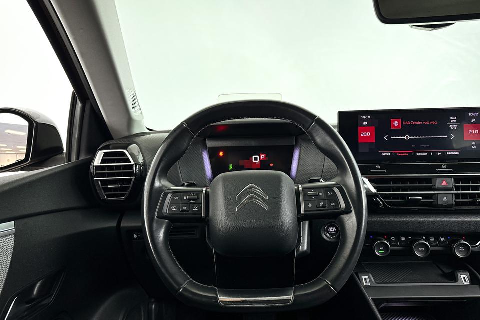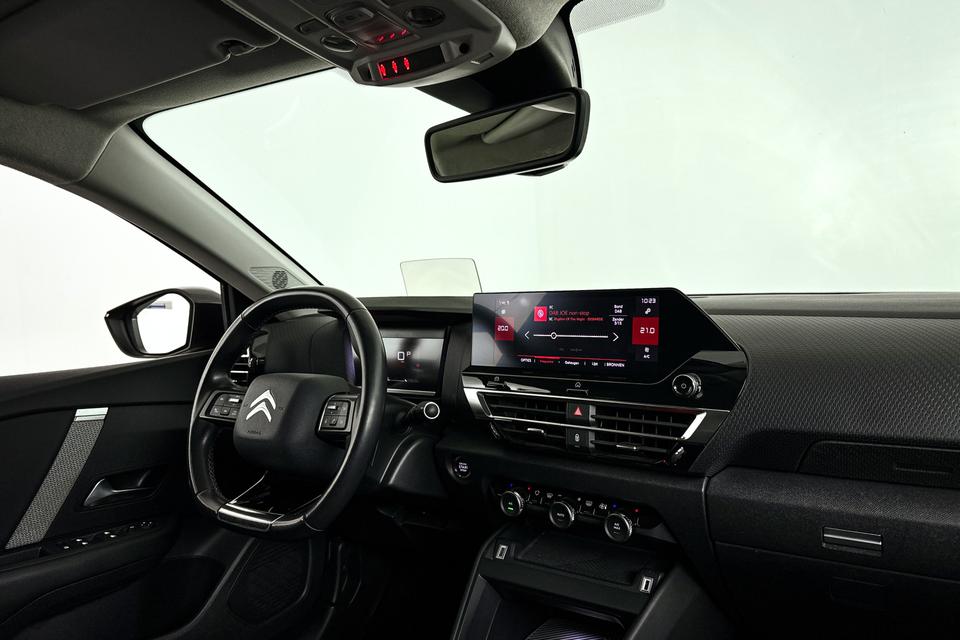 De slimme lay-out van het digitale dashboard zorgt voor een uitstekend overzicht onderweg. De achteruitrijcamera geeft u duidelijk zicht op de ruimte achter de auto. Adaptive cruise control houdt de ingestelde snelheid vast en houdt automatisch afstand tot uw voorligger. Spraaksturing betekent dat u verschillende functies met uw stem kunt bedienen. Deze Citroën C4 is voorzien van remote services. Via uw smartphone bedient u diverse functies ook op afstand en krijgt u informatie over de status van uw auto. Extra opties op deze auto zijn: navigatiesysteem, achteropkomend verkeer waarschuwing, automatische airconditioning, schakelpaddles aan het stuur, DAB ontvangst en regensensor.