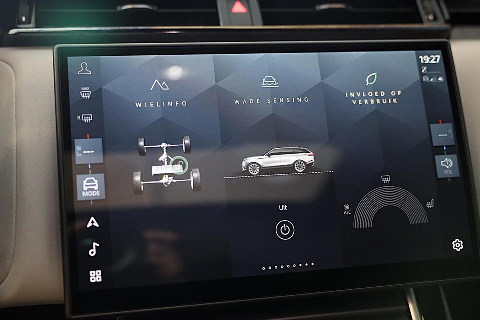 Het is niet alleen maar een stoer uiterlijk, deze Land Rover Range Rover Velar biedt ook de sportieve rijkwaliteiten die u zoekt. De aandrijving van deze Land Rover wordt verzorgd door een viercilinder motor en een automatische transmissie. Van binnen ziet u een lederen interieur, een stijlvolle uitvoering. Dankzij de elektrische stoelbediening is het gemakkelijk om de optimale zitpositie te vinden. Licht, lucht, ruimte en gemak wordt verzorgd door het elektrisch bedienbare glazen panoramadak. Met een druk op de knop gaat de elektrische achterklep open. Verblinding van tegenliggers is er niet meer bij, dankzij de koplampen met matrix LED-verlichting. En toch de kwaliteit van daglicht in het donker! U wordt in deze auto ook getrakteerd op open dak, 20 inch lichtmetalen velgen, geluidsisolerende ramen, zwarte hemelbekleding, dakspoiler en in delen neerklapbare achterbank.