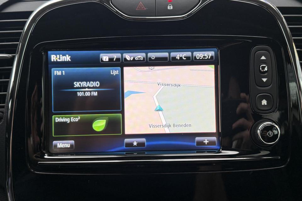 U verwacht natuurlijk automatische airconditioning in deze auto, en die is er dan ook. Superstrak parkeren wordt een eitje dankzij de parkeersensoren. De auto neemt u werk uit handen doordat hij zelf veel in de gaten houdt. Een regensensor en een automatisch inschakelbare verlichting nemen waar wanneer de ruitenwissers en het licht aan moeten. De cruise control heeft een feilloos geheugen. Als u even vaart heeft geminderd, bent u na één klik weer op de oude snelheid. Klinkt dit bekend? Met een volle boodschappentas bij uw auto aankomen en dan onderin op zoek moeten naar de sleutel. Hoeft niet bij deze Renault Captur dankzij de keyless entry. De uitrusting van deze Renault is met navigatiesysteem en lederen stuur en versnellingspook behoorlijk compleet.