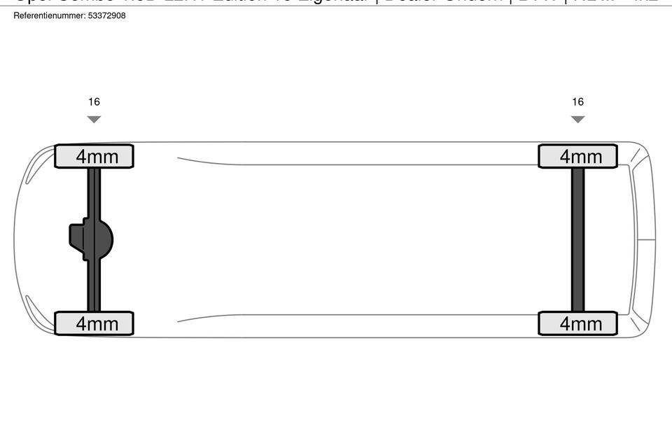 Vooras: Bandenprofiel links: 4 mm; Bandenprofiel rechts: 4 mm