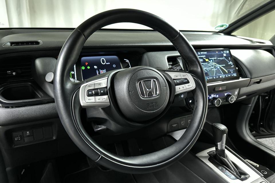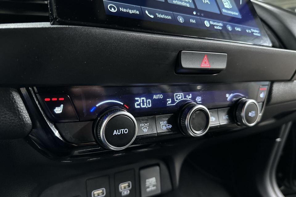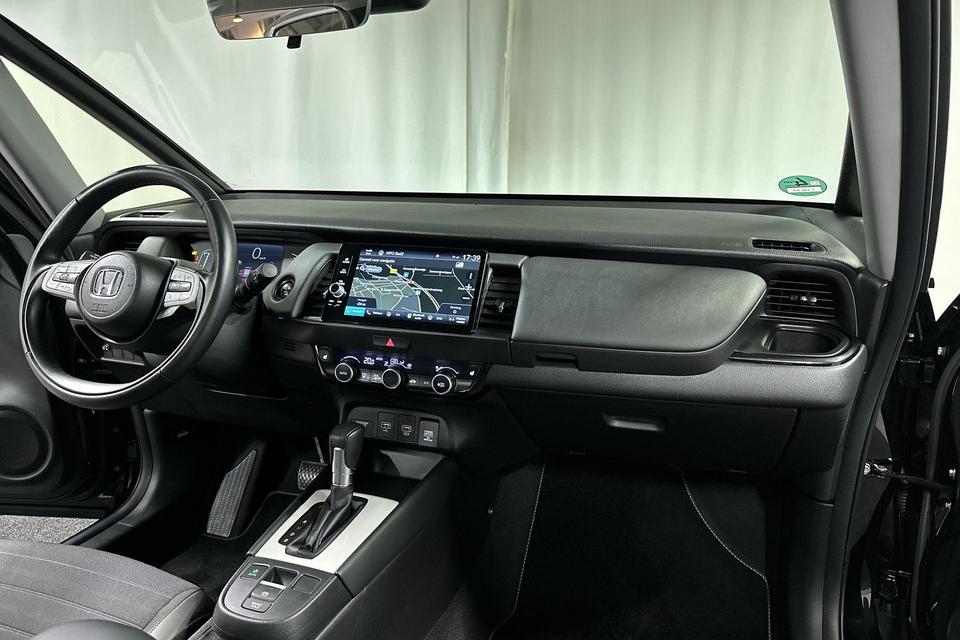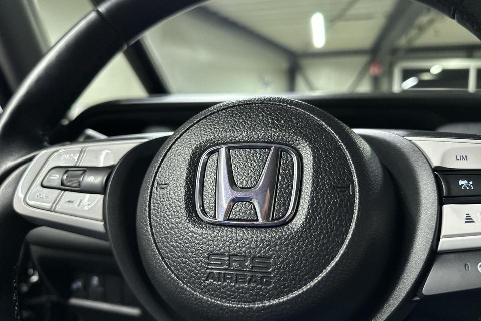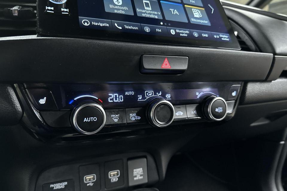 Via het digitale dashboard bent u permanent op de hoogte van alle informatie die u nodig heeft voor een veilige rit. Een vergeten muurtje, een verborgen paaltje? Dat gebeurt niet meer, dankzij de achteruitrijcamera. Adaptive cruise control houdt de ingestelde snelheid vast en houdt afstand tot het voertuig voor u. Rijden-stilstaan, rijden-stilstaan. Niks is irritanter en vermoeiender dan filerijden. Daar heeft deze Honda Jazz een oplossing voor: de file assistent, die met radarmeting permanent het tempo aanpast op de voorligger. Zelfs als die stopt. Als u regelmatig met een aanhanger of een fietsendrager op pad bent, is de afneembare trekhaak een praktische extra. Ook connected drive services, premium audiosysteem, full map navigatiesysteem, achteropkomend verkeer waarschuwing, automatische airconditioning en DAB ontvangst zijn aan boord.