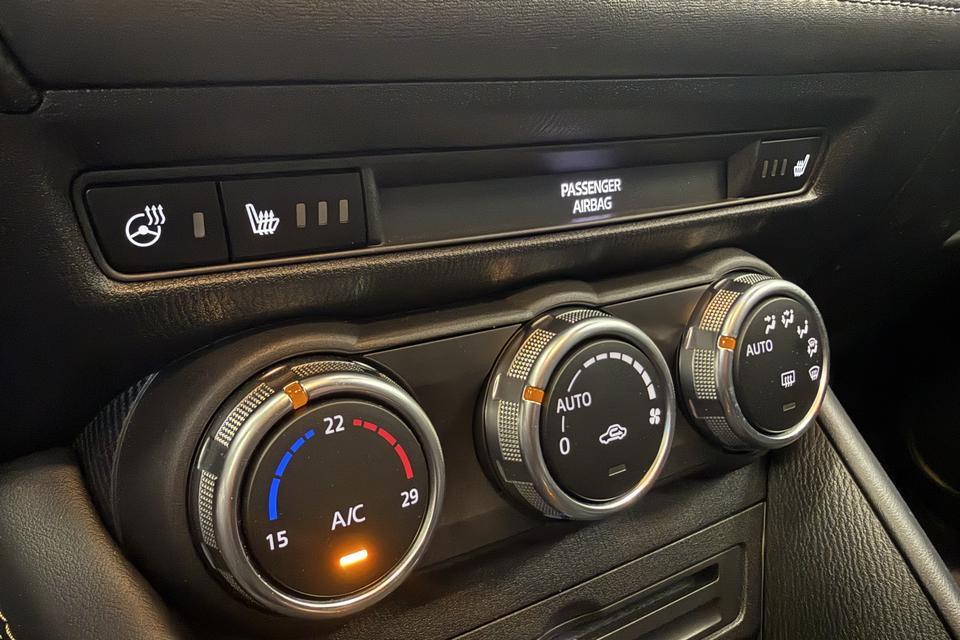 Bij het inparkeren hoeft u het laatste stukje niet te gokken: de achteruitrijcamera kijkt voor u uit. Adaptive cruise control houdt de ingestelde snelheid vast en houdt automatisch afstand tot uw voorligger. Spraaksturing luistert naar uw stem en bedient de belangrijkste voertuigfuncties. De sensatie van superieur geluid wordt geleverd door het high performance audiosysteem. Het full map navigatiesysteem is uw vertrouwde gids, waarheen de reis ook gaat. Ook is de Mazda uitgerust met: achteropkomend verkeer waarschuwing, automatische airconditioning, schakelpaddles aan het stuur, DAB ontvangst, regensensor en keyless entry.