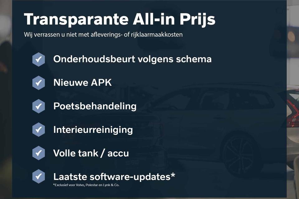 Nooit meer beslagen ramen of ramen krabben. Met deze auto bent u altijd klaar voor de winter dankzij de standkachel. Een veiligheidsverhogende optie is de ingebouwde spraakbediening. Terwijl u uw ogen op de weg houdt, bedient u de auto met uw stem. Locatie, motorconditie, storingen... via Connected Services krijgt u alle vitale info over de auto door. Ook handig bij pech! Formidabele geluidskwaliteit en een compleet spectrum van klank wordt geleverd door het high performance audiosysteem. U rijdt snel, zuinig en zeker naar uw bestemming met het navigatiesysteem met harde schijf. Deze Volvo is voorzien van WIFI-hotspot, achteropkomend verkeer waarschuwing, electronic climate control, audiobediening op het stuur, parkeersensoren achter en regensensor.