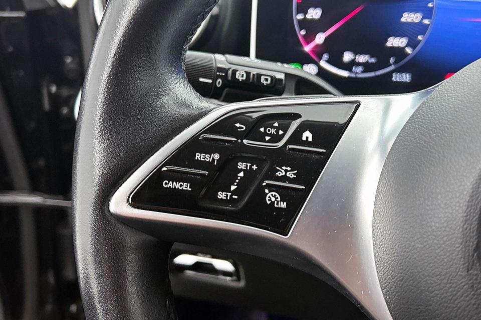 Pas de interface van uw cockpit moeiteloos aan. Het is mogelijk door het digitale dashboard in deze auto. Hoeveel ruimte heeft u nog bij het inparkeren? De achteruitrijcamera brengt helder in beeld wat zich achter de auto bevindt en geeft een geluidssignaal. Met adaptive cruise control houdt de auto zelfstandig afstand tot uw voorligger. Een veiligheidsverhogende optie waarmee u comfortabel onderweg bent. Spraaksturing is onderdeel van de uitrusting van deze auto. Met uw stem kunt u de belangrijkste voertuigfuncties bedienen. De auto is voorzien van een trekhaak en is een uitstekende caravantrekker. De Mercedes-Benz is standaard voorzien van: connected drive services, navigatiesysteem met harde schijf, automatische airconditioning, draadloos opladen, DAB ontvangst en regensensor.
