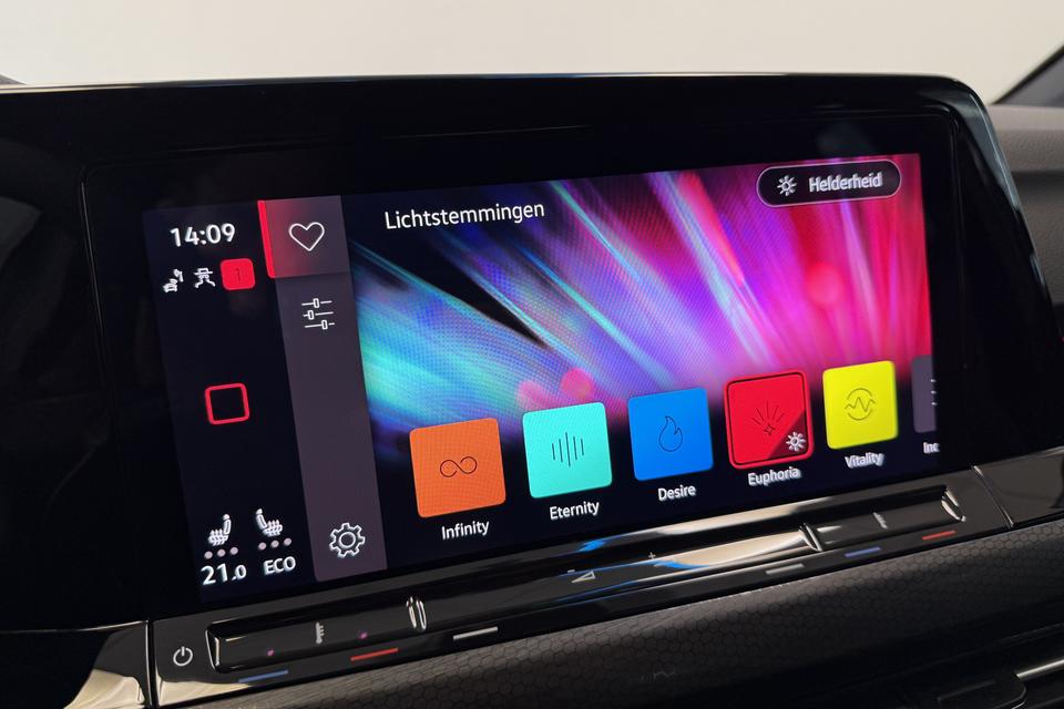 Zoals u mag verwachten van deze Volkswagen Golf is hij uitgerust met een reeks aan actieve veiligheidssystemen. Verkeersbord-detectie herkent verkeersborden en toont deze op het instrumentarium van de auto. Ongemerkt buiten de rijstrook raken? Nee hoor, het Lane-keeping systeem waarschuwt en corrigeert. Het systeem van forward collision warning, of in gewoon Nederlands 'botswaarschuwing', treedt in werking als de sensor te weinig afstand signaleert met een voor- of tegenligger. Verder is deze auto uitgerust met hill hold functie, vermoeidheidsherkenning, autonoom remsysteem en bandenspanningcontrolesysteem.