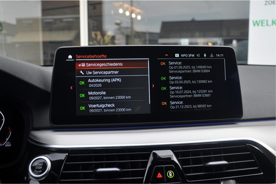Onderhoudsboekjes: DigitaalGaaf uitgevoerde BMW 5-serie Touring diesel in heel mooie staat. In deze M-Sport uitvoering, met originele 20 inch M-Performance wielen en in de kleur Sophistograu met recht een dikke BMW. De auto is zeer recent nog voorzien van een onderhoudsbeurt bij Ekris bij 149.000 km in september 2025. In deze luxe uitvoering uitgerust met o.a. de comfortstoelen met het uitgebreide Dakota-lederpakket, panoramadak, adaptieve led-koplampen, DAB+-radio en elektrisch bedienbare stoelen en stuurwiel met geheugen etc.