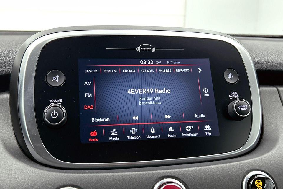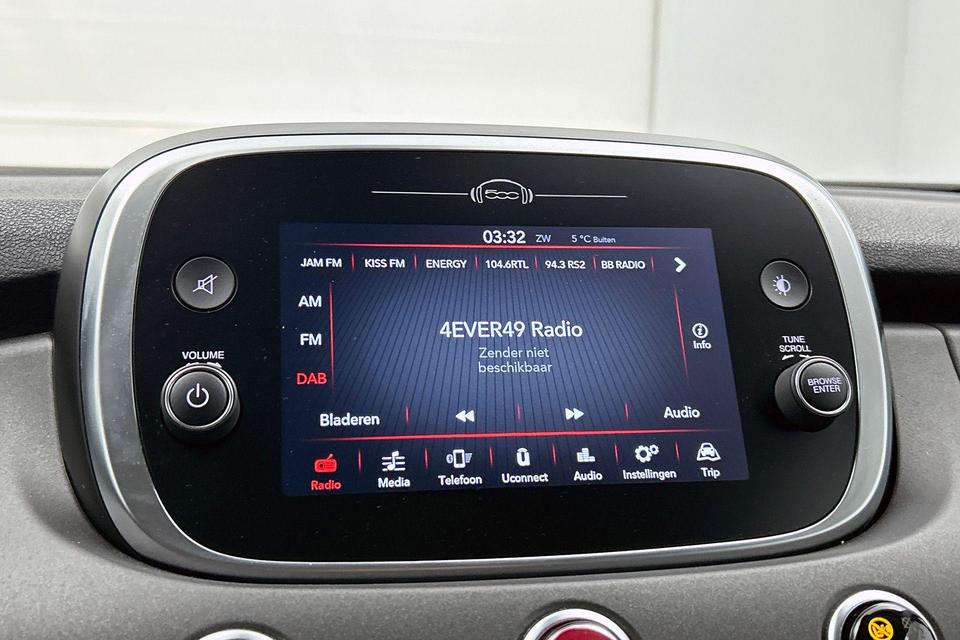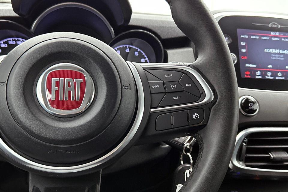 Met uw smartphone maakt u overal contact met de auto. Remote services geven direct inzicht in uiteenlopende functies en zijn op afstand te activeren. U bedient het audiosysteem met dab-radio via knoppen op het stuur. Zo kunt u steeds uw aandacht gericht houden op de weg. Inparkeren en uitparkeren kost geen enkele moeite dankzij de parkeersensoren. Natuurlijk is een complete auto als deze ook voorzien van sensoren die de omgeving in de gaten houden. Deze Fiat heeft niet alleen een automatisch inschakelbare verlichting aan boord, maar ook een regensensor. Met de cruise control komt u bijna nog fitter aan dan u vertrekt. Ook airconditioning, lederen stuur, isofix-aansluiting, centrale deurvergrendeling met afstandsbediening, boordcomputer en lederen versnellingspook zijn aan boord.