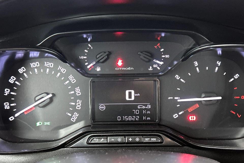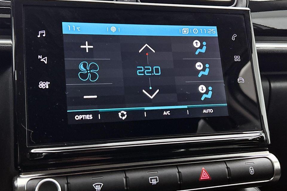 Vergeten af te sluiten? Bandenspanning onvoldoende? De speciale app geeft u direct een seintje met behulp van Connected Services. Een belangrijke veiligheidsvoorziening is de bediening van het audiosysteem en het navigatiesysteem via knoppen op het stuur. Dab-ontvangst geeft daarbij een kraakheldere ontvangst. De auto is ook uitgevoerd met automatische airconditioning. Om de veiligheid onderweg te verhogen, heeft deze Citroen zowel een automatisch inschakelbare verlichting als een regensensor aan boord, zodat hij zelf de verlichting en de ruitenwissers kan inschakelen. Zuinig en zeker zoeven? Dan is de cruise control ideaal! De uitrusting van deze auto is met isofix-aansluiting, centrale deurvergrendeling met afstandsbediening, boordcomputer en verstelbaar stuur behoorlijk compleet.