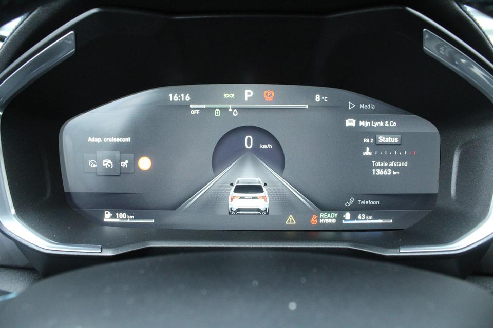 Het digitale dashboard zorgt voor een super functionele display van reisinformatie. Adaptive cruise control is veilig en comfortabel. De snelheidsregelaar houdt automatisch afstand tot het voertuig dat voor u rijdt. Rijden-stilstaan, rijden-stilstaan. Niks is irritanter en vermoeiender dan filerijden. Daar heeft deze Lynk & Co 01 een oplossing voor: de file assistent, die met radarmeting permanent het tempo aanpast op de voorligger. Zelfs als die stopt. In deze 01 vindt u niet alleen schakelaars op het stuur om het full map navigatiesysteem te bedienen en het audio-installatiesysteem met DAB-ontvangst, maar er is ook spraakbediening. Battery low? Even op de draadloze telefoonlader en gaan! U bent in deze Lynk & Co ook voorzien van WIFI-hotspot, achteropkomend verkeer waarschuwing, automatische airconditioning, parkeersensoren achter, regensensor en keyless entry.
