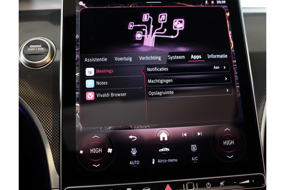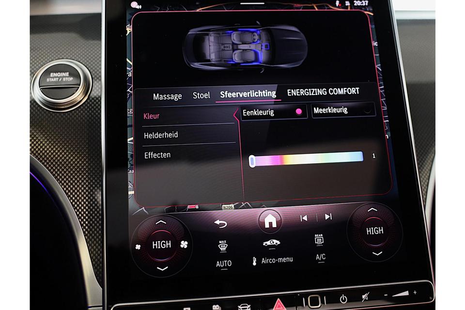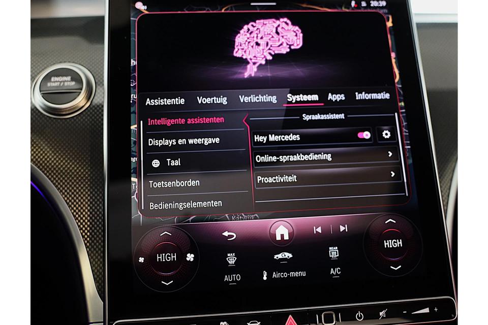 Pas de interface van uw cockpit moeiteloos aan. Het is mogelijk door het digitale dashboard in deze auto. De vier camera's genereren samen een 360 graden beeld rond de auto, zodat u een volledig overzicht hebt van wat er rondom uw auto gebeurt. Adaptive cruise control is veilig en comfortabel. De snelheidsregelaar houdt automatisch afstand tot het voertuig dat voor u rijdt. Had u de auto nou wel afgesloten? Met Connected Services checkt u het overal en altijd. Muziek luisteren wordt genieten met het high performance audiosysteem. Met navigatiesysteem met harde schijf, automatische airconditioning, draadloos opladen, DAB ontvangst, regensensor en keyless entry is deze Mercedes-Benz helemaal compleet.