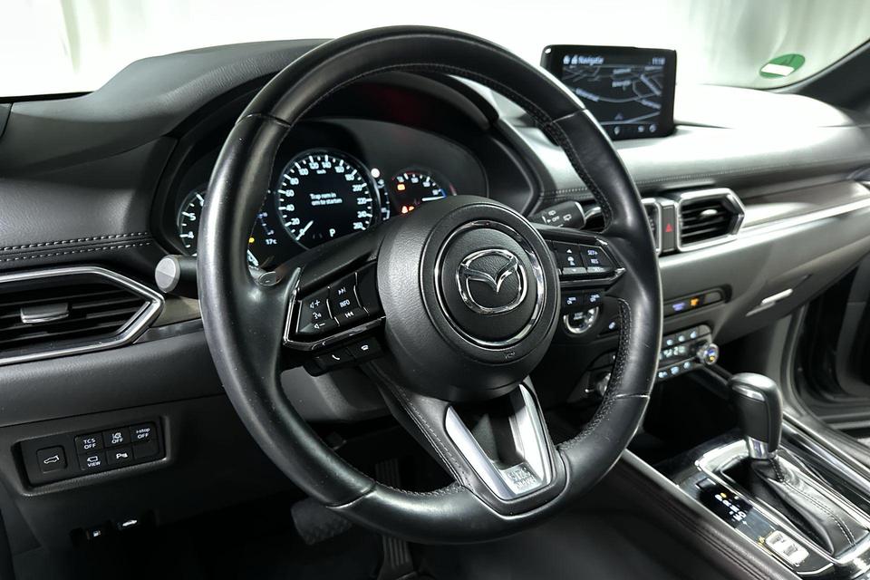 De nieuwste veiligheidssystemen komen in deze Mazda CX-5 samen. In het instrumentarium kunt u bovendien de verkeersborden zien die u onderweg tegenkomt. Zo helpt deze Mazda u om veiliger te rijden. Het Lane-keeping systeem let constant op en waarschuwt of corrigeert als u onoplettend over de lijnen van de rijstrook gaat. Ook als uw aandacht even verslapt, blijft de forward collision warning bij de wekker. Dreigt er een botsing met een voor- of tegenligger, dan waarschuwt het systeem direct. De veiligheid van deze auto wordt verder verhoogd door head-up display, dodehoekdetectie, hill hold functie, brake assist, vermoeidheidsherkenning en bandenspanningcontrolesysteem.