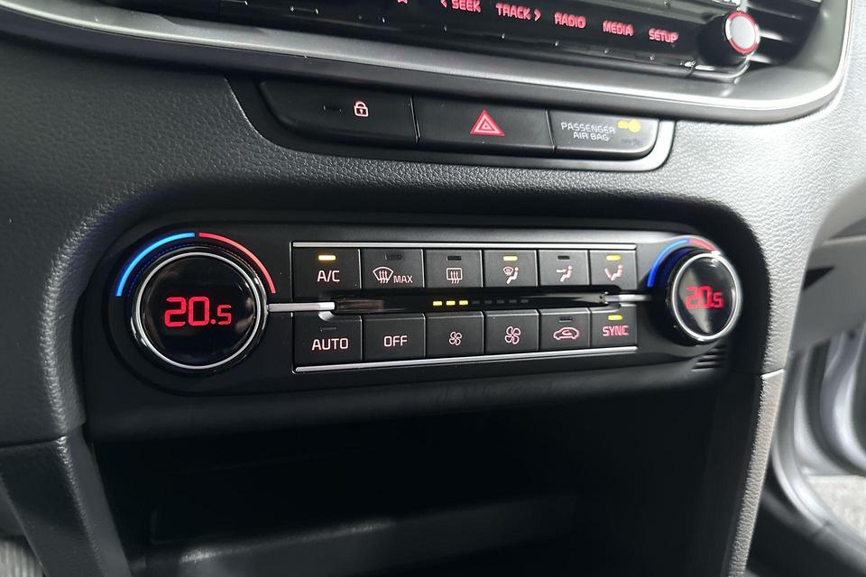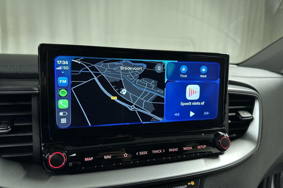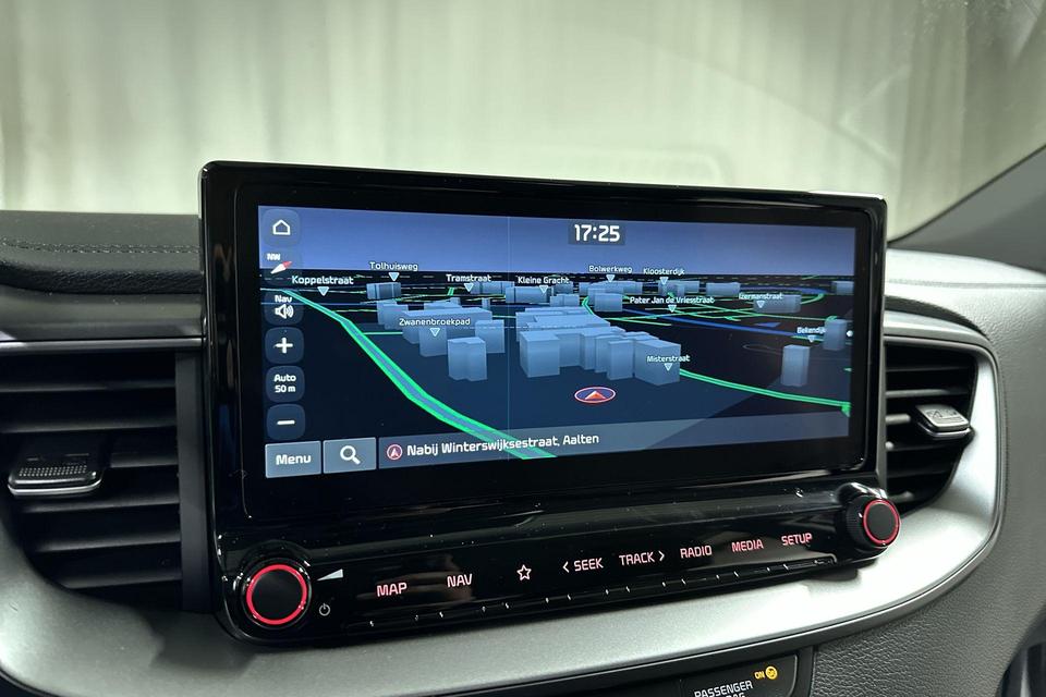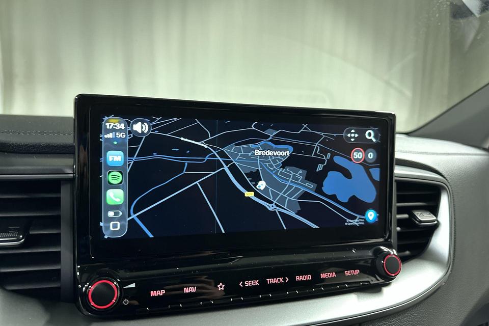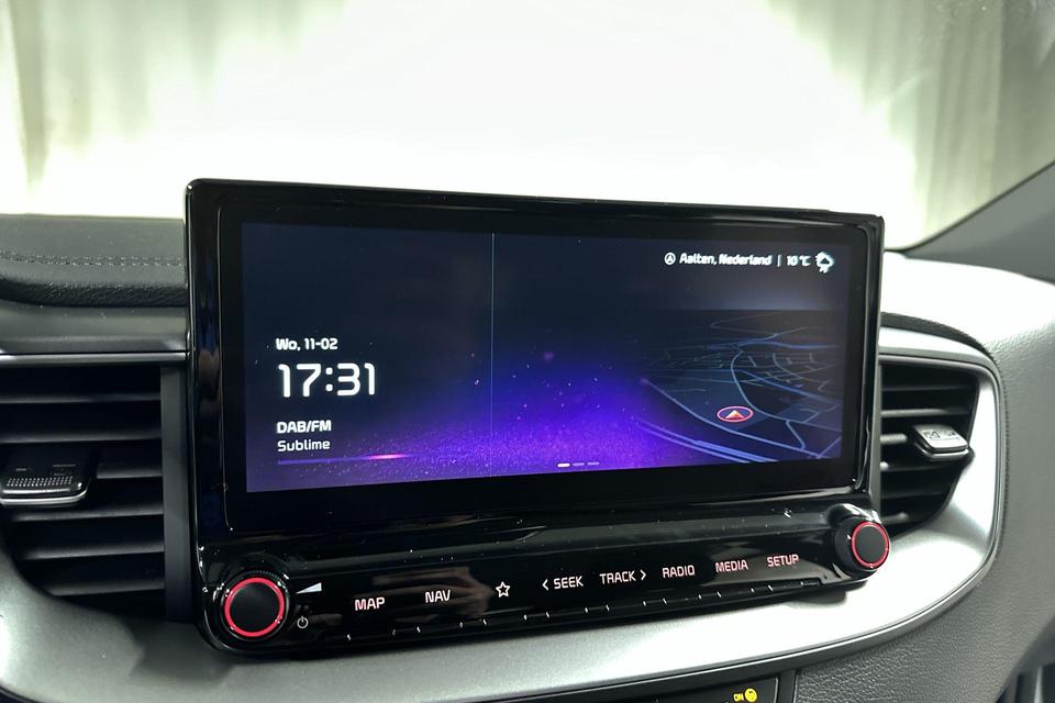 Niets achter deze auto blijft verborgen door de achteruitrijcamera. Een veilig gevoel! Hoe is het met de banden, de accu en andere onderdelen? Connected Services maakt het inzichtelijk, 24/7 via de app. Uw veiligheid op de weg wordt verhoogd door het audiosysteem met DAB-ontvangst en het full map navigatiesysteem te bedienen vanaf het stuur of met spraakbediening, zodat uw handen veilig op het stuur blijven en uw ogen gericht zijn op de weg. De electronic climate control zorgt voor een prettige binnentemperatuur. De automatisch inschakelbare verlichting en regensensor zorgen dat onderweg automatisch de verlichting en de ruitenwissers worden ingeschakeld. Daarmee nemen ze u veel werk uit handen. U bent in deze Kia ook voorzien van automatisch dimmende binnenspiegel, lederen stuur, centrale deurvergrendeling met afstandsbediening en lederen versnellingspook.
