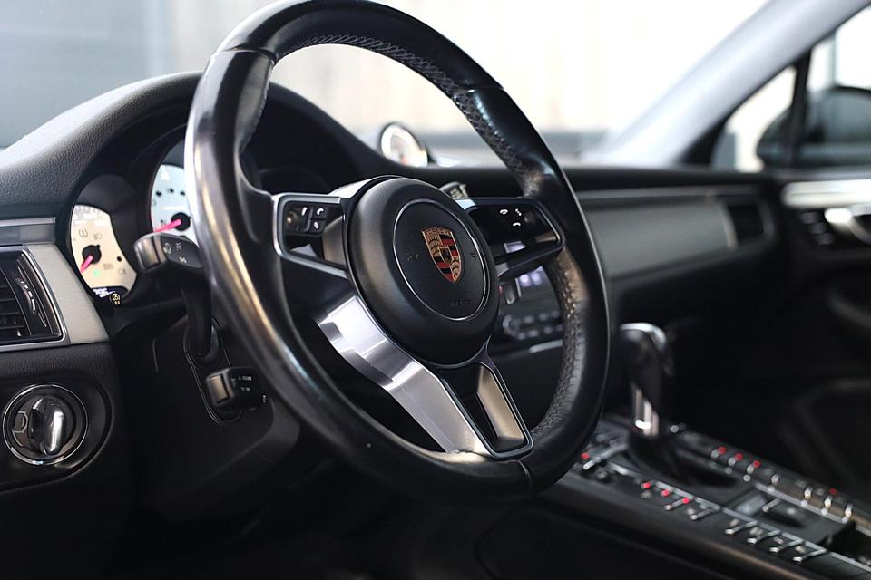 Pragmatisch en veilig als deze auto is, beschikt hij over diverse veiligheidssystemen. Deze Porsche Macan is ook behulpzaam als het gaat om een rechte koers. Het Lane-keeping systeem signaleert en corrigeert als u onbedoeld de rijstrooklijnen dreigt te overschrijden. Bij een noodstop gebeurt er heel veel tegelijk: gas los, rempedaal in, kijken, sturen. Dan is het een veilig gevoel dat de Brake Assist uw remactie tot het maximum oppept. In deze Porsche vinden we verder een dodehoekdetectie, hill hold functie en bandenspanningcontrolesysteem.