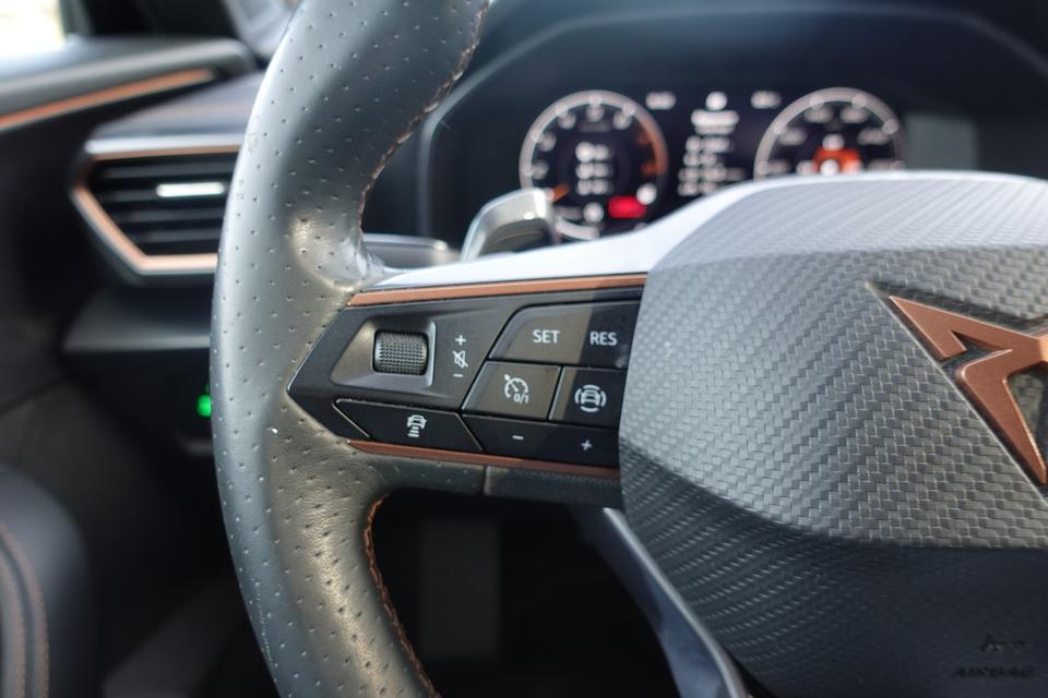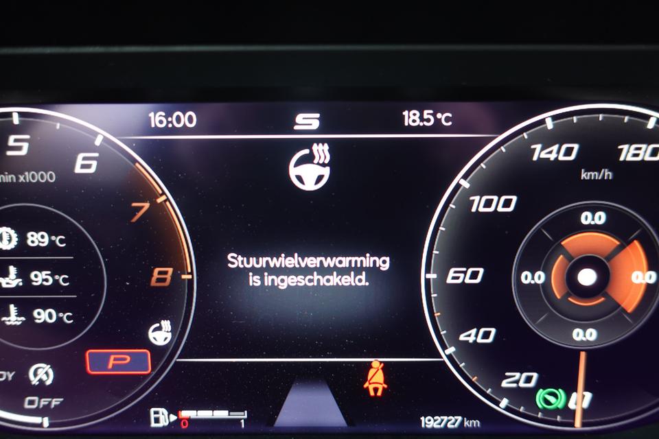 Zoals u mag verwachten van deze CUPRA Formentor is hij uitgerust met een reeks aan actieve veiligheidssystemen. U rijdt ook veiliger omdat deze auto voor u de verkeersborden langs de weg kan lezen. De belangrijkste borden worden op uw instrumentarium geprojecteerd, zodat u ze niet kunt missen. Onbedoeld buiten de rijstrook raken wordt voorkomen door het Lane-keeping systeem. De forward collision warning reduceert het gevaar van een botsing met een voorligger significant. Verder is deze auto uitgerust met dodehoekdetectie, hill hold functie, vermoeidheidsherkenning, autonoom remsysteem en bandenspanningcontrolesysteem.