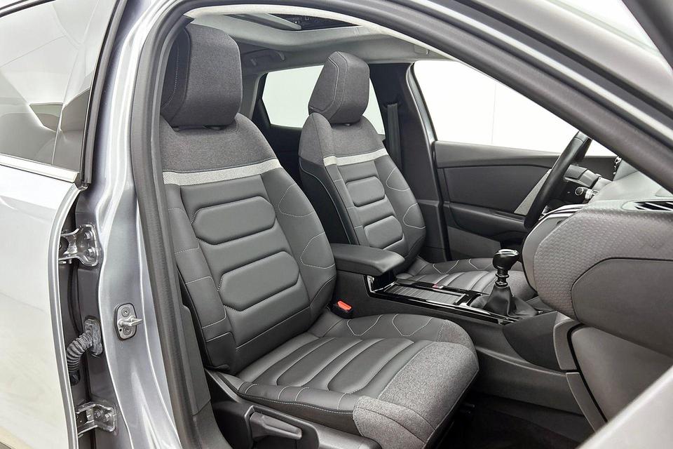 Een gevisualiseerd overzicht van alle belangrijke functies wordt geleverd door het digitale dashboard. De achteruitrijcamera laat duidelijk zien hoeveel ruimte u nog heeft bij het inparkeren. Handig en veilig: Connected Services. Alle vitale functies en data van de auto checkt u via de app op uw smartphone. Terwijl het navigatiesysteem de ideale route voor u uitstippelt, geniet u van de kwaliteit van het audiosysteem met DAB-ontvangst. De bediening is bovendien gemakkelijk via knoppen op het stuur of via spraak. De sensoren van de achteropkomend verkeer waarschuwing houden zicht op de dode hoeken achter u. Te weinig afstand tot de achterligger? Het systeem geeft direct een signaal. Natuurlijk behoren automatische airconditioning, regensensor, cruise control, keyless entry, lederen stuur en isofix-aansluiting ook tot de uitrusting van deze complete auto.