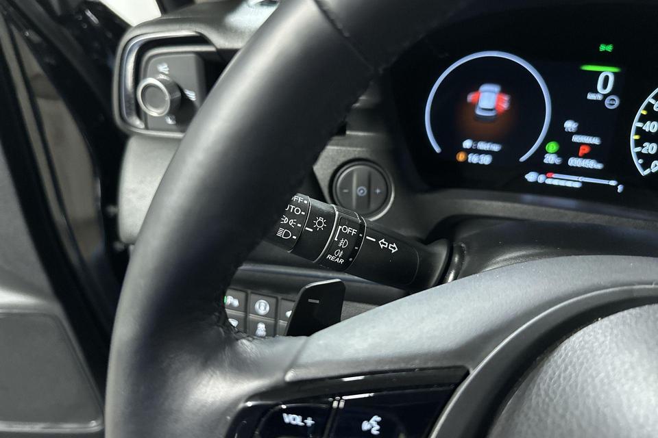 Hoeveel ruimte heeft u nog bij het inparkeren? De achteruitrijcamera brengt helder in beeld wat zich achter de auto bevindt en geeft een geluidssignaal. Met adaptive cruise control houdt de auto zelfstandig afstand tot uw voorligger. Een veiligheidsverhogende optie waarmee u comfortabel onderweg bent. Rijden-stilstaan, rijden-stilstaan. Niks is irritanter en vermoeiender dan filerijden. Daar heeft deze Honda HR-V een oplossing voor: de file assistent, die met radarmeting permanent het tempo aanpast op de voorligger. Zelfs als die stopt. De ingebouwde Connected Services vertellen u via de app alles over de status van de auto. Locatie, onderhoudsstatus, brandstofpeil en nog veel meer! Het full map navigatiesysteem zorgt ervoor dat u snel en ontspannen op uw bestemming aankomt. Natuurlijk behoren achteropkomend verkeer waarschuwing, electronic climate control, DAB ontvangst, regensensor, keyless entry en automatisch dimmende binnenspiegel ook tot de uitrusting van deze complete auto.