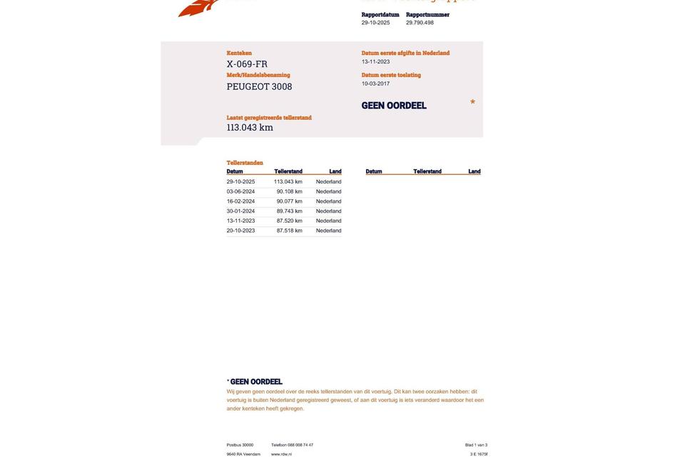 Huidige stand 113.043km